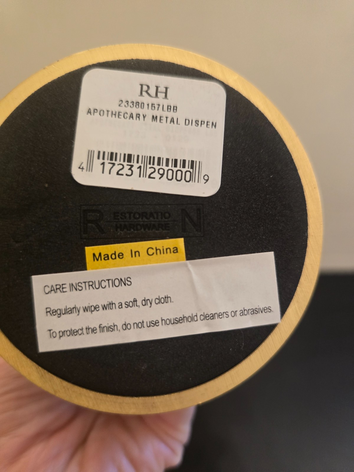 Restoration Hardware Apothecary Metal Soap Dispenser - lacquered Burnished Bras
