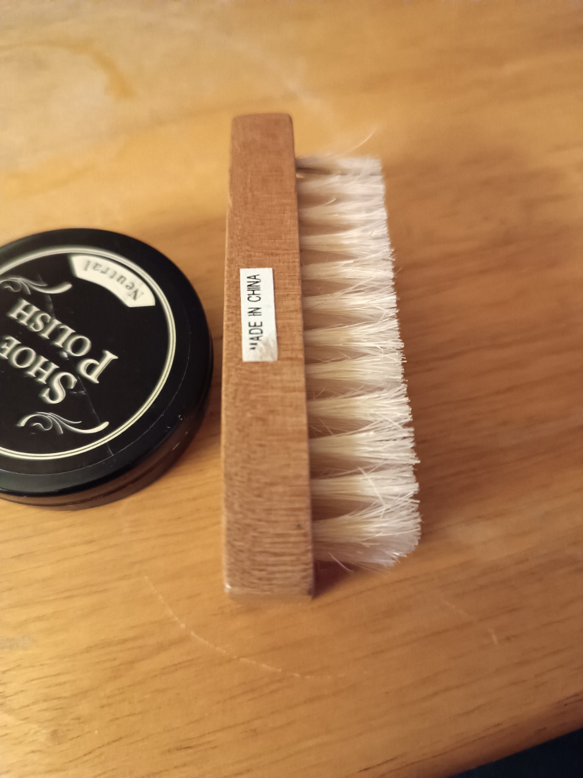как выглядит Vintage New In Open Box Travel Shoe Polish Shine Kit Socks Wood Holder фото