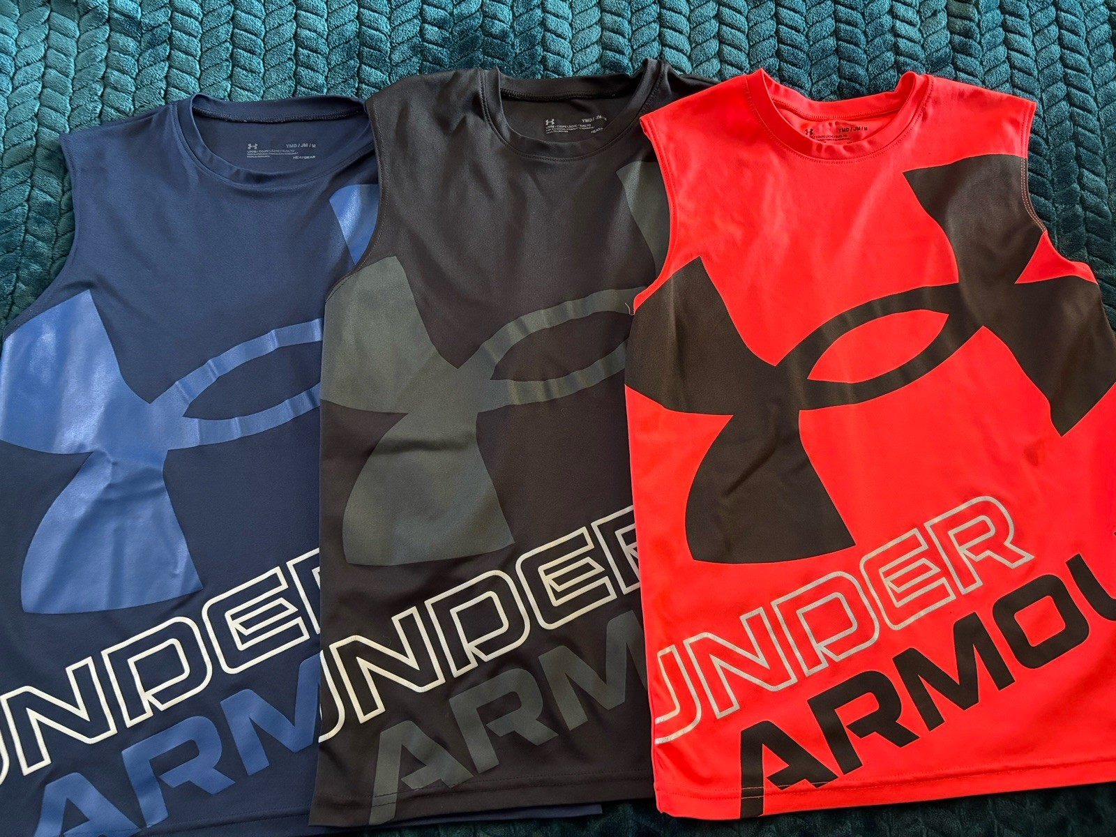 как выглядит Lot Of 9 Youth Boys Under Armour Size Medium T-shirts Tank Tops фото