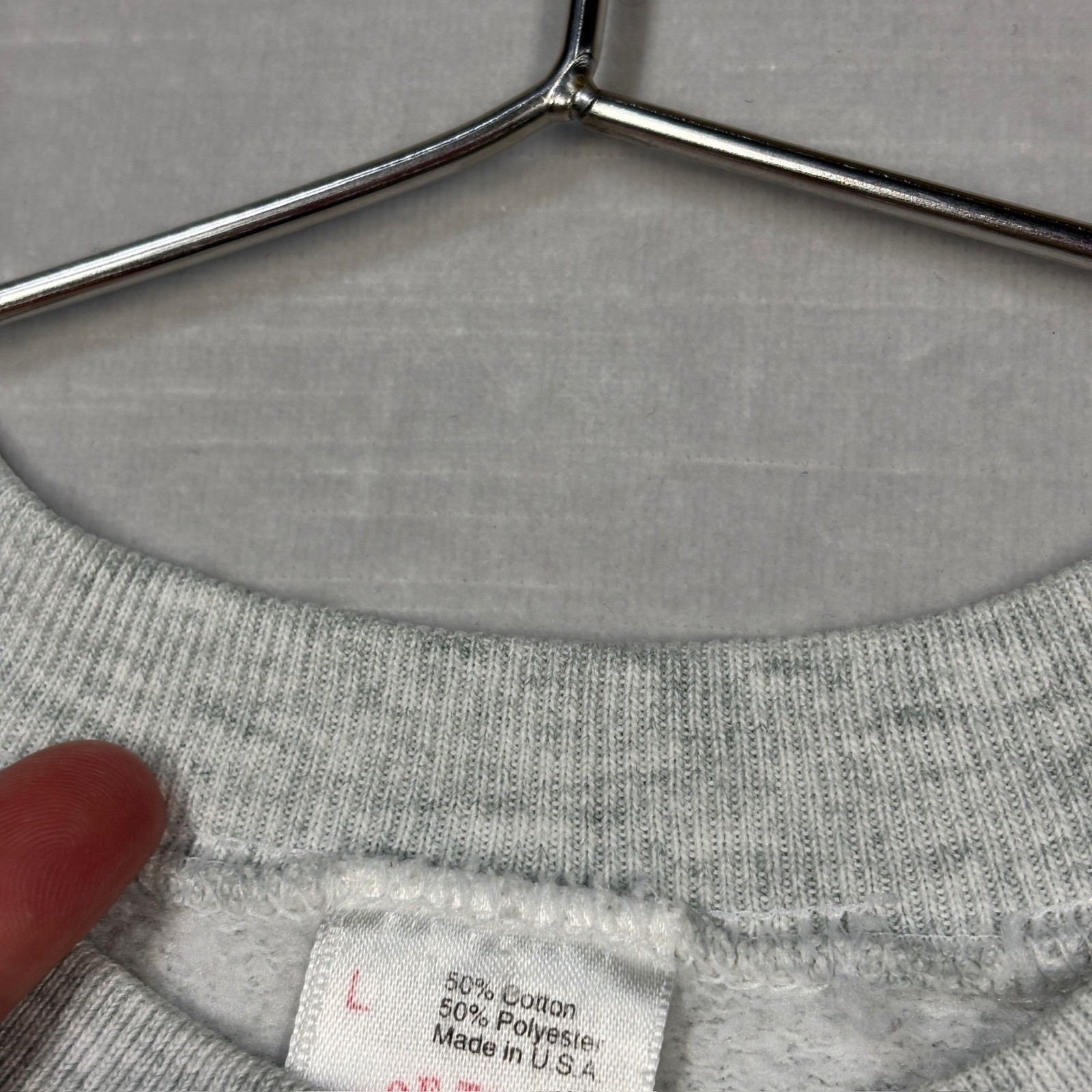 Vintage Fruit of the Loom Sweatshirt L Heathered Gray Blank Plain Crewneck USA