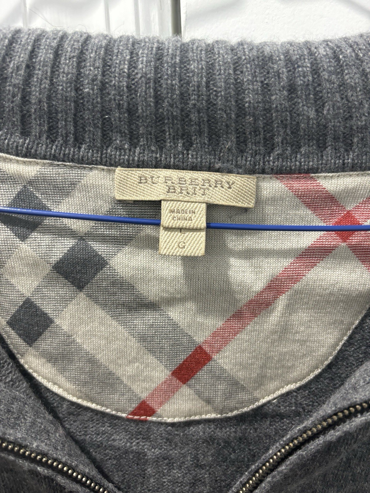 как выглядит Burberry brit half-zip 100 cashmere elbow patch grey sweater Large фото