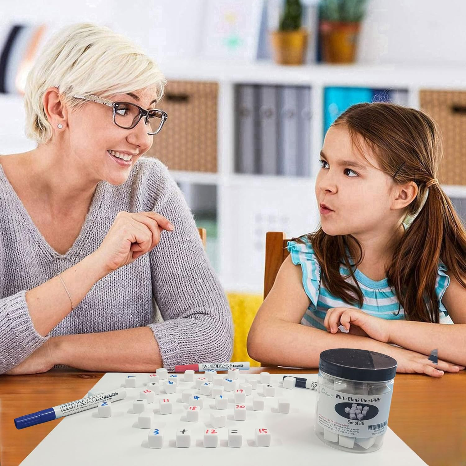 60 Pieces Blank Dice Write On,16Mm Six-Sided White Cubes with Smoothed Surface f