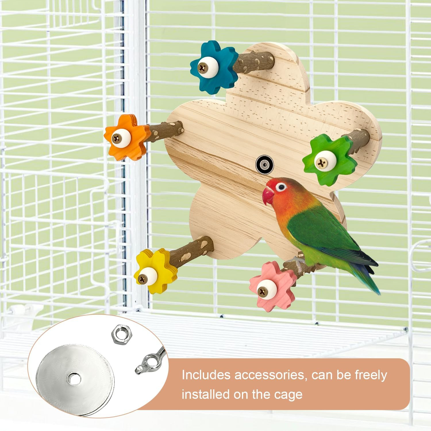 Parakeet Toys, Natural Wood Perch with 5 Branches, Unique Durable Avian Cage Acc