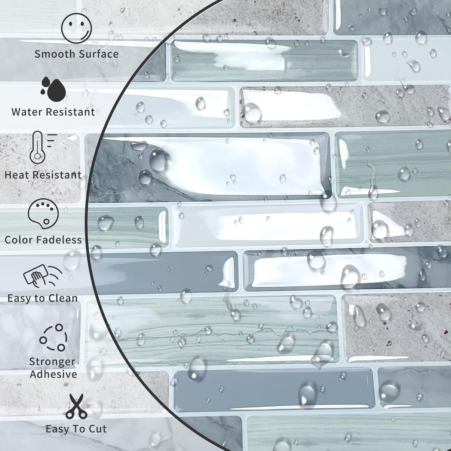 10 Sheet Peel and Stick Backsplash Tiles, 12 X 12 Inch Sage Green Self Adhesive