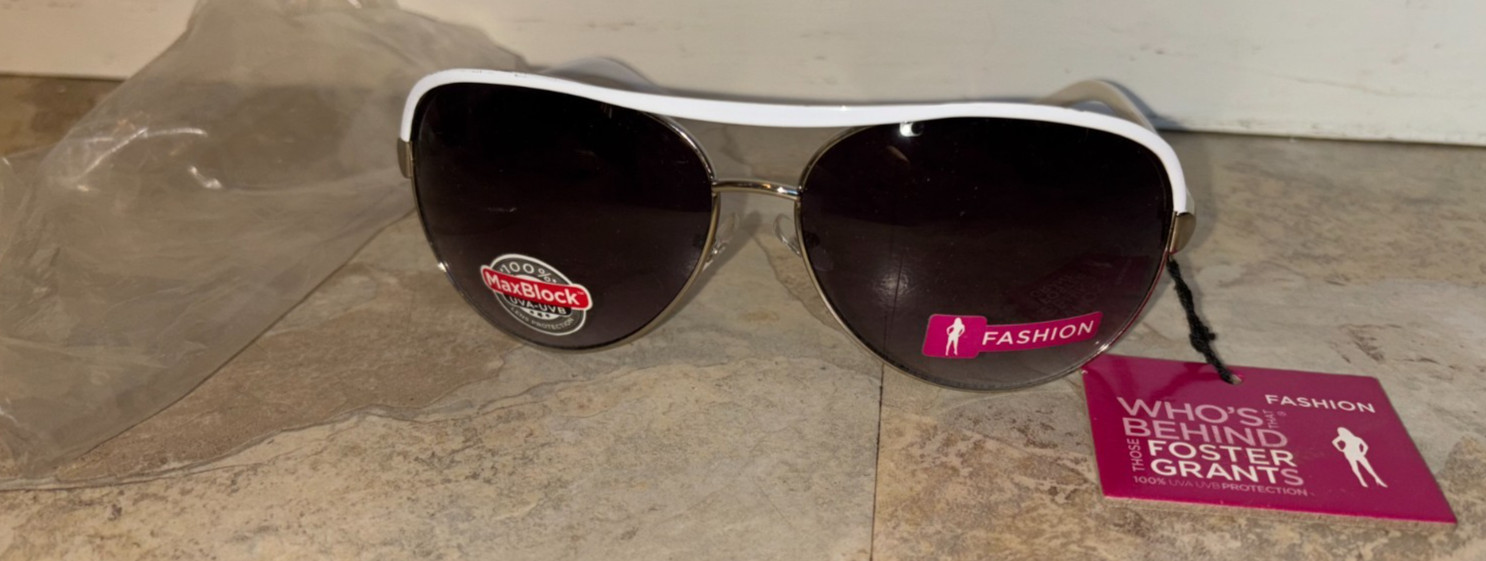 FOSTER GRANT Womens Fashion WHITE Trim SUNGLASSES 100 UVA/UVB OL 1111 Icing