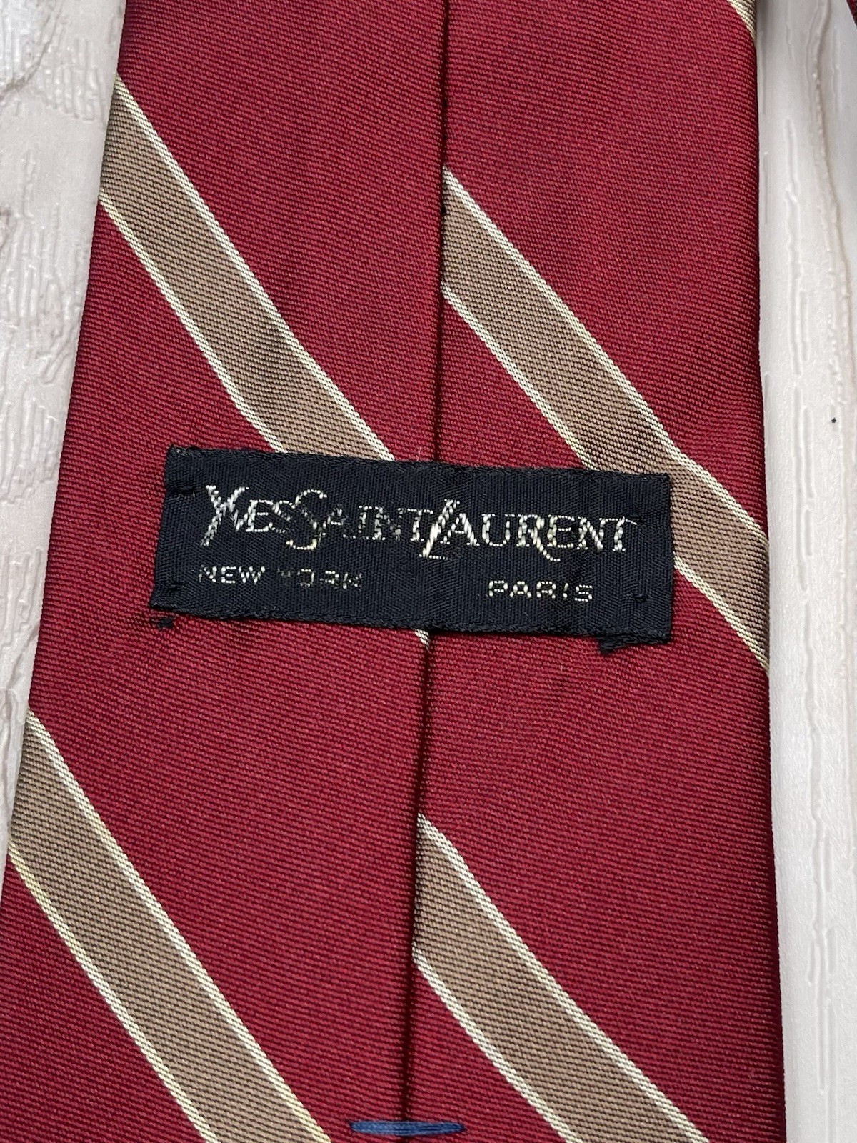 как выглядит VTG YVES SAINT LAURENT Mens 54"x3" Burgundy Repp Stripe Logo NECKTIE Tie EUC фото