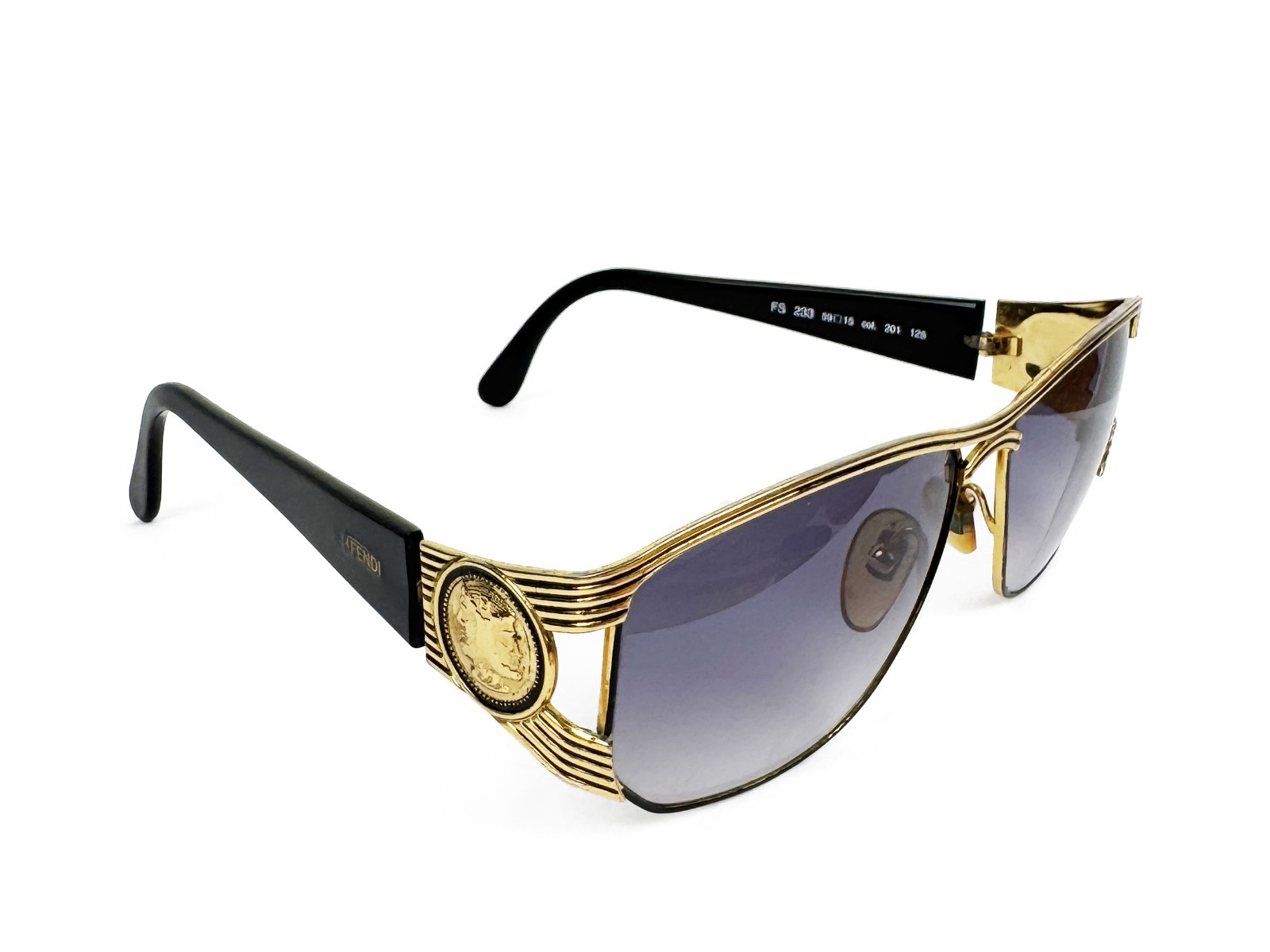 Vintage Fendi FS 233 201 Sunglasses 80s Gold Arm Coin Unisex Made in Italy