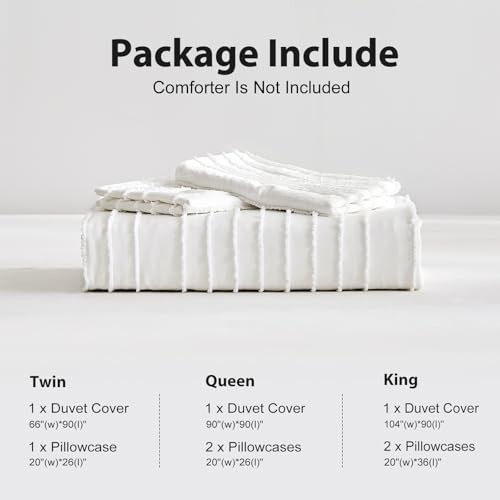Boho Duvet Cover Set Size, Striped Textured Tufted Bedding Set, 3 Queen White