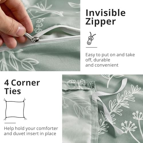 Duvet Cover Queen Size, Queen 90x90 01 - Green Leaves No Comforter