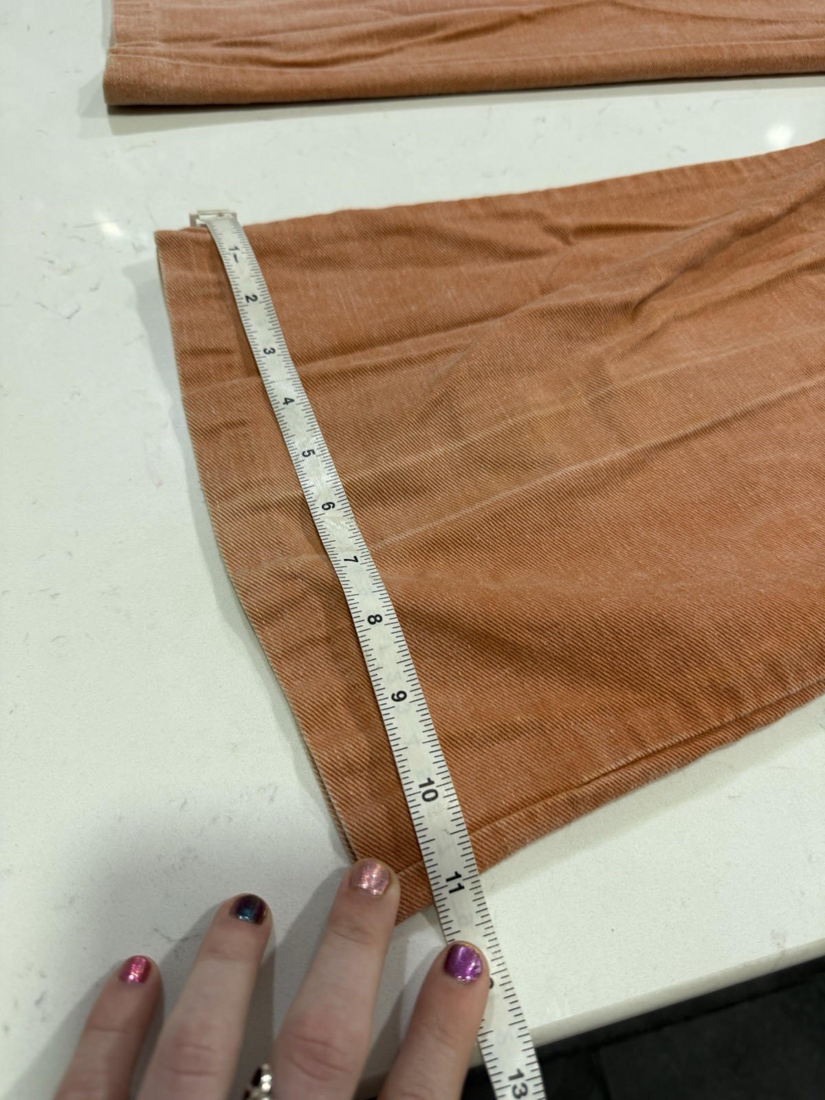как выглядит Vntg 1970 Orange Denim Bell Bottom Jeans High Waisted With Weave Pocket XS Hippy фото