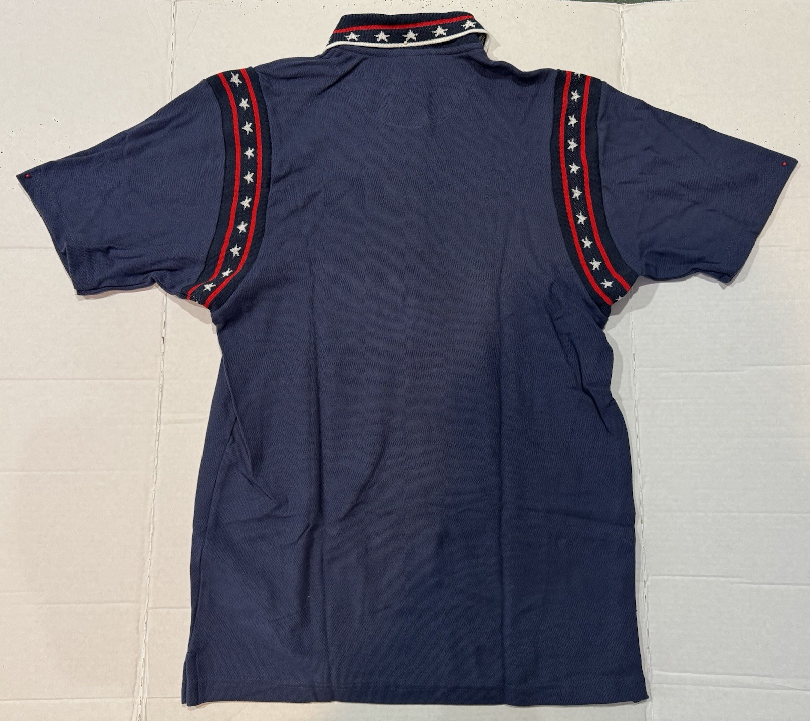 как выглядит VTG Hilton Corporate Casuals Blue Stars Stripes Polo Shirt Large фото