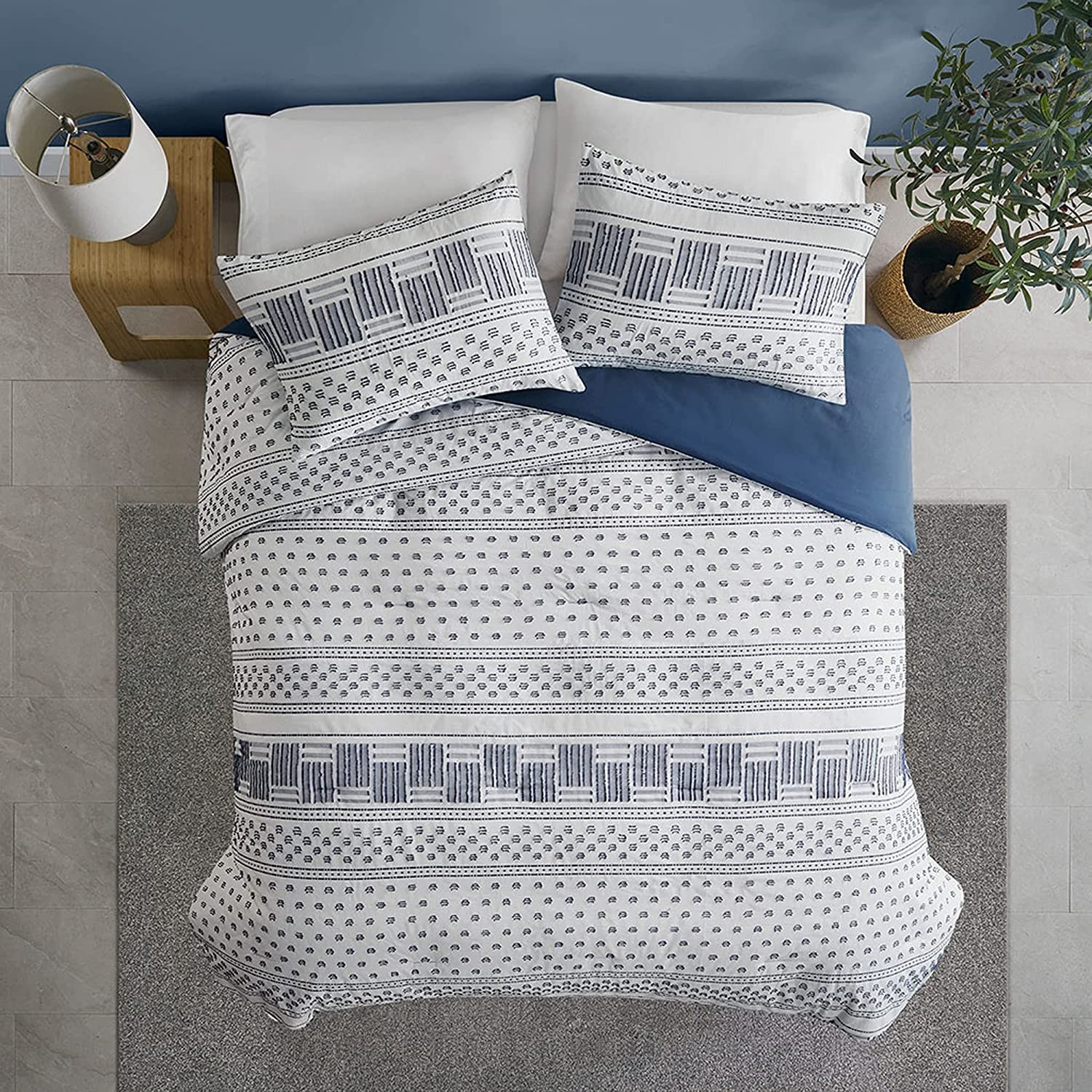 Modern Navy Bedding, Blue Full/Queen Farmhouse Comforter Set, Cotton Top with...