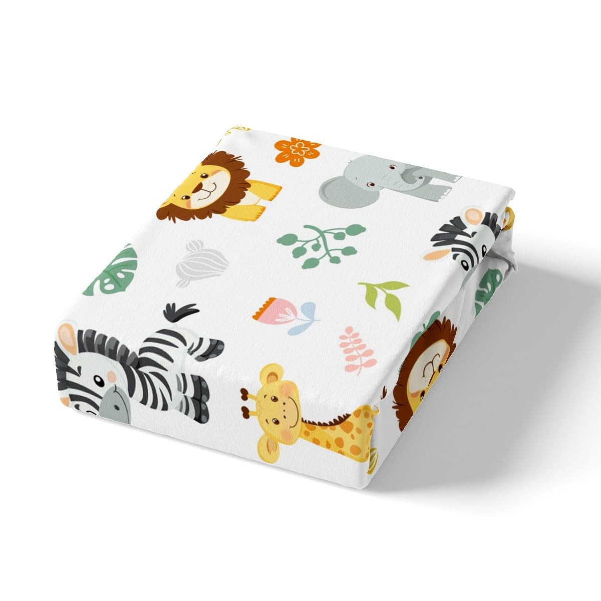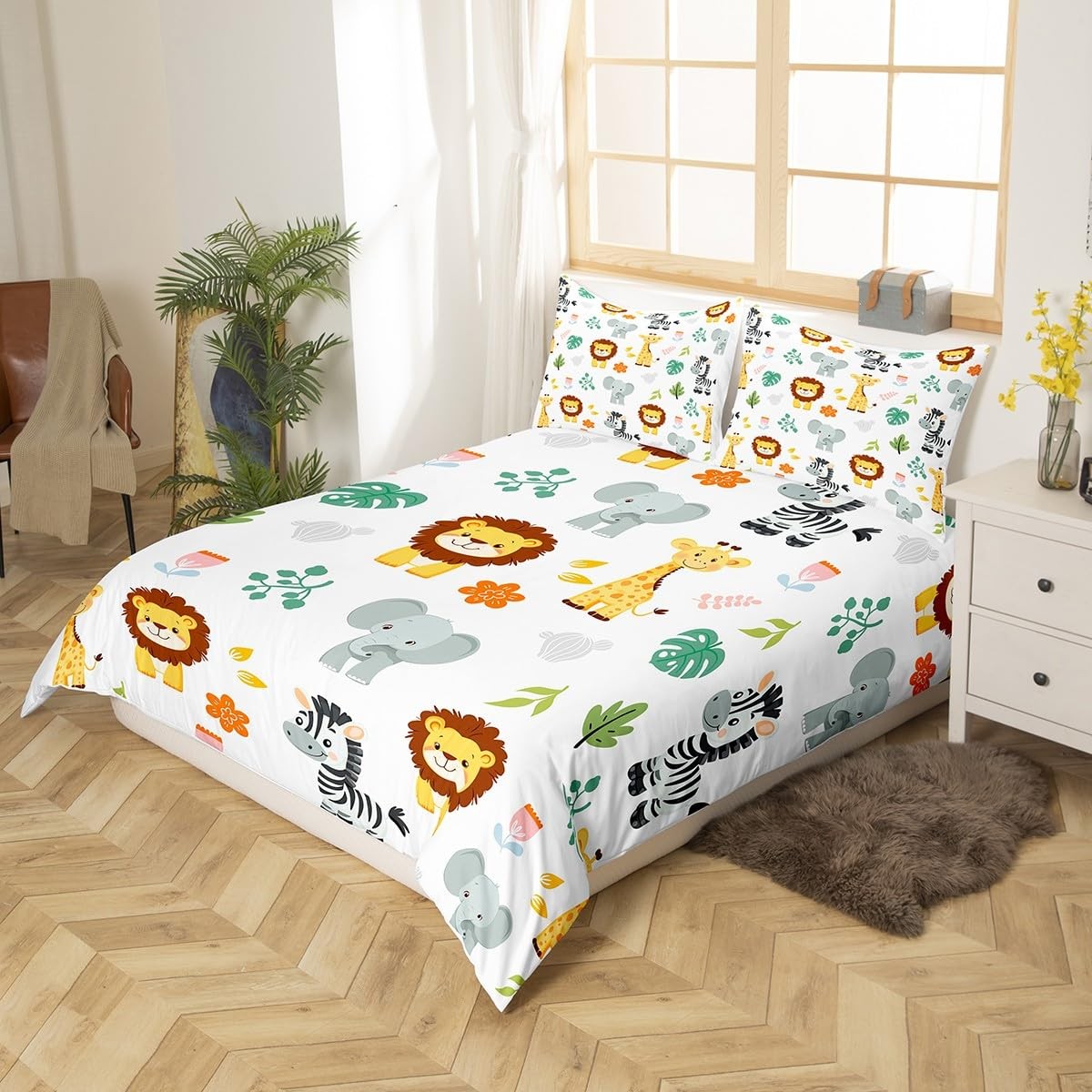 Animals Kids Duvet Cover Set Twin Size, Cute Lion Giraffe Elephant Zebra Bedd...