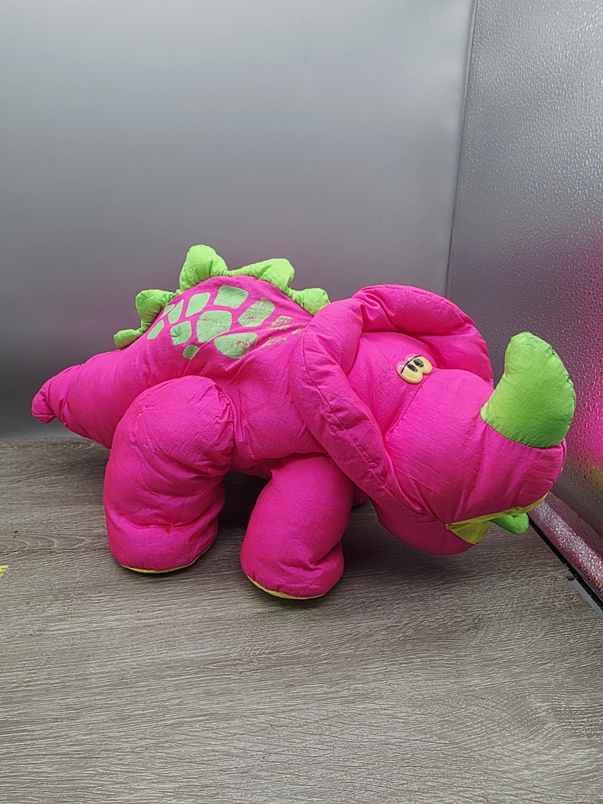 Fisher Price 1993 Puffalumps Dinosaur Dino Roar 20 Plush Pink Triceratops Rare