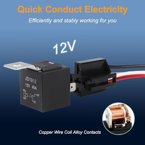 DIANN Car Relay with Harness 12V 40A 4 Pin SPST Harness Sockets with Color 2pcs