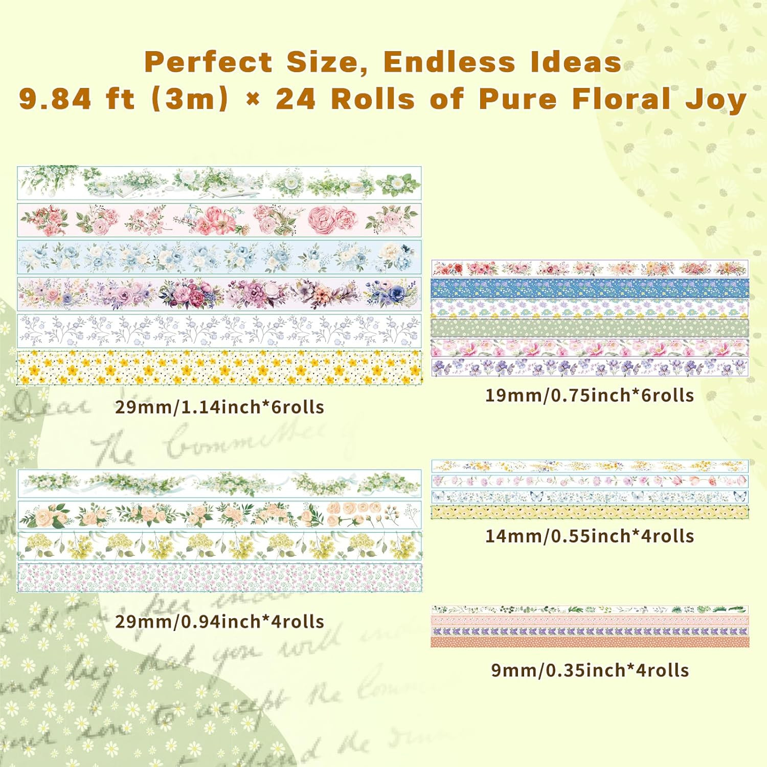 Floral Washi Tape Set 24 Rolls 3M,Wide and Thin Decorative Masking Tape Bulk fo