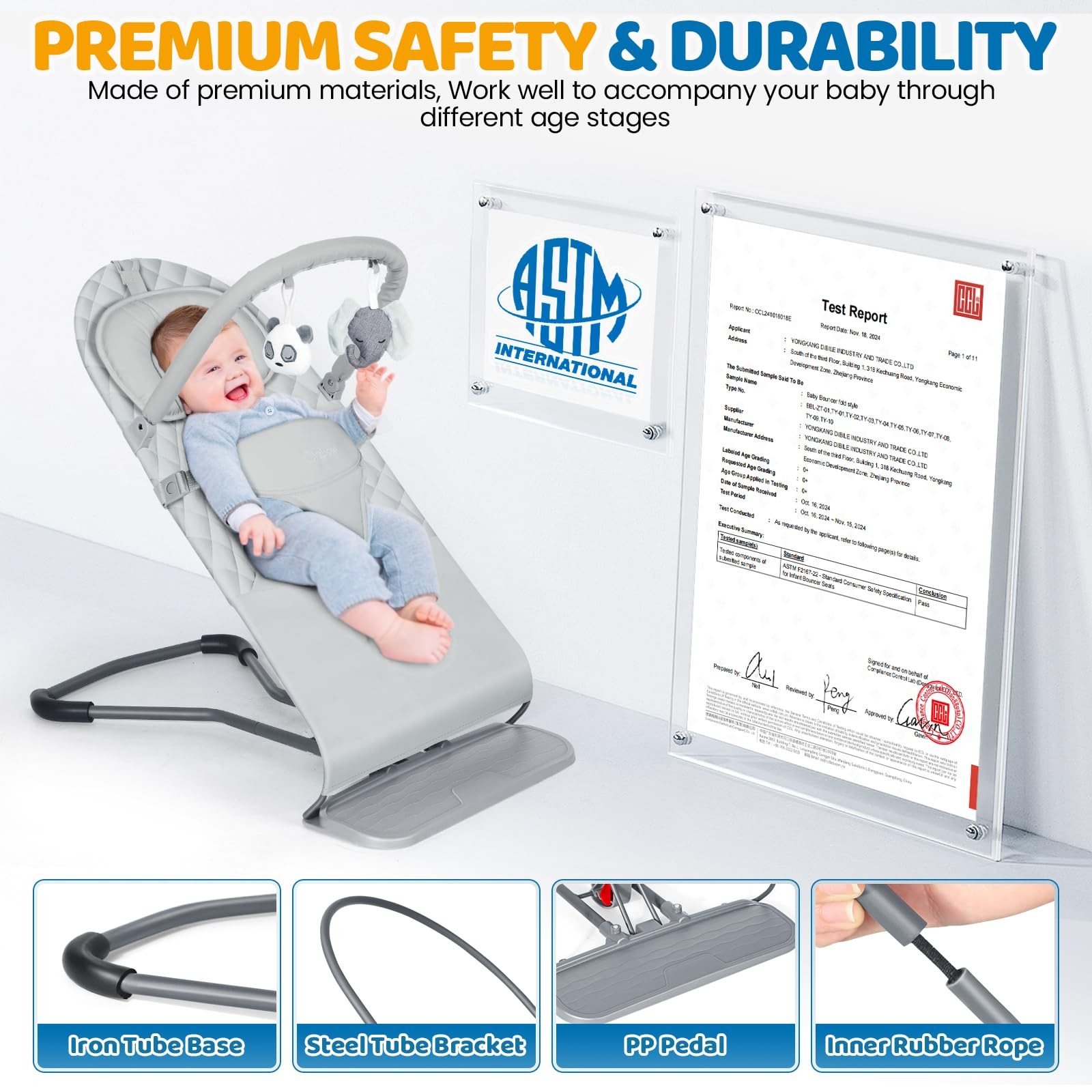 Orzbow Portable Baby Bouncer Seat, Foldable w/ 3 Recline Positions Storage Bag