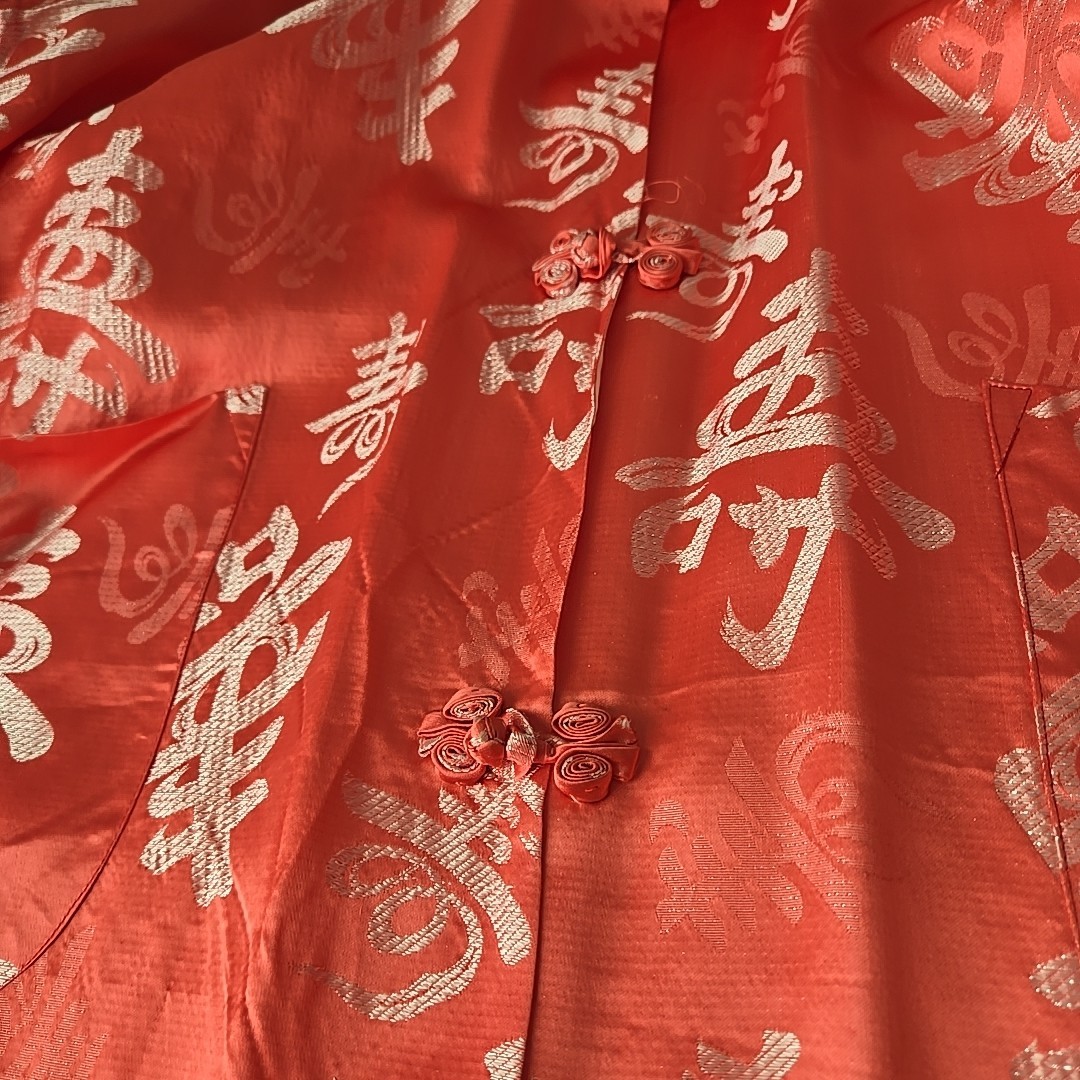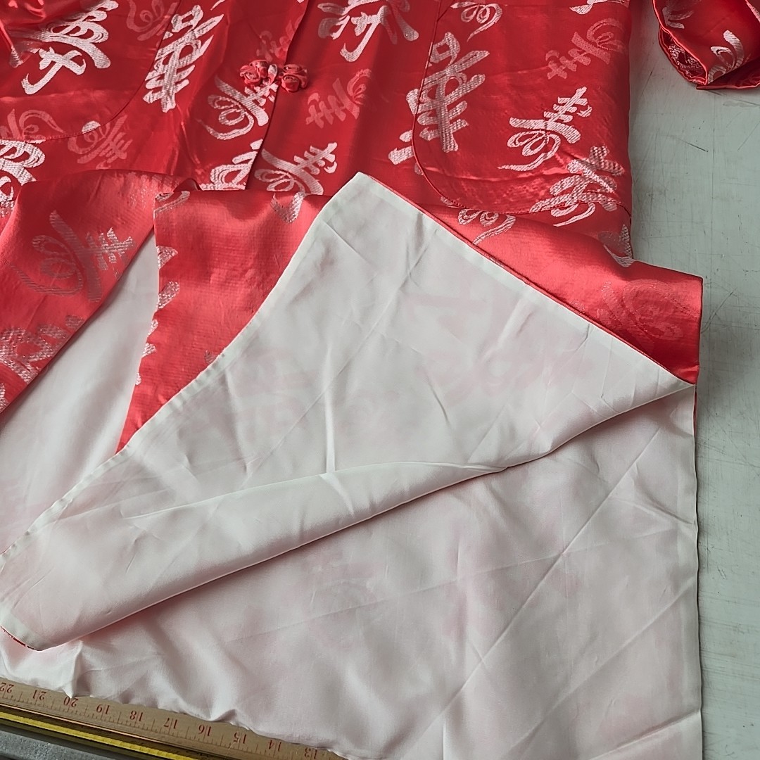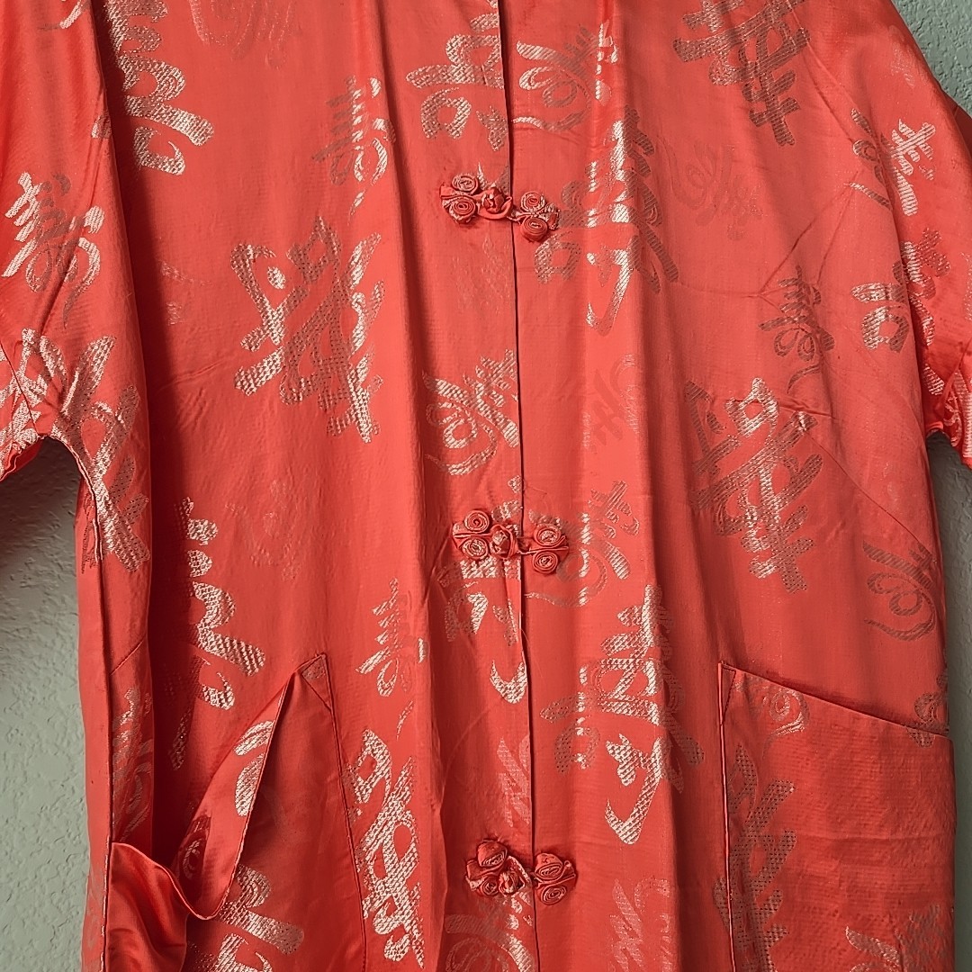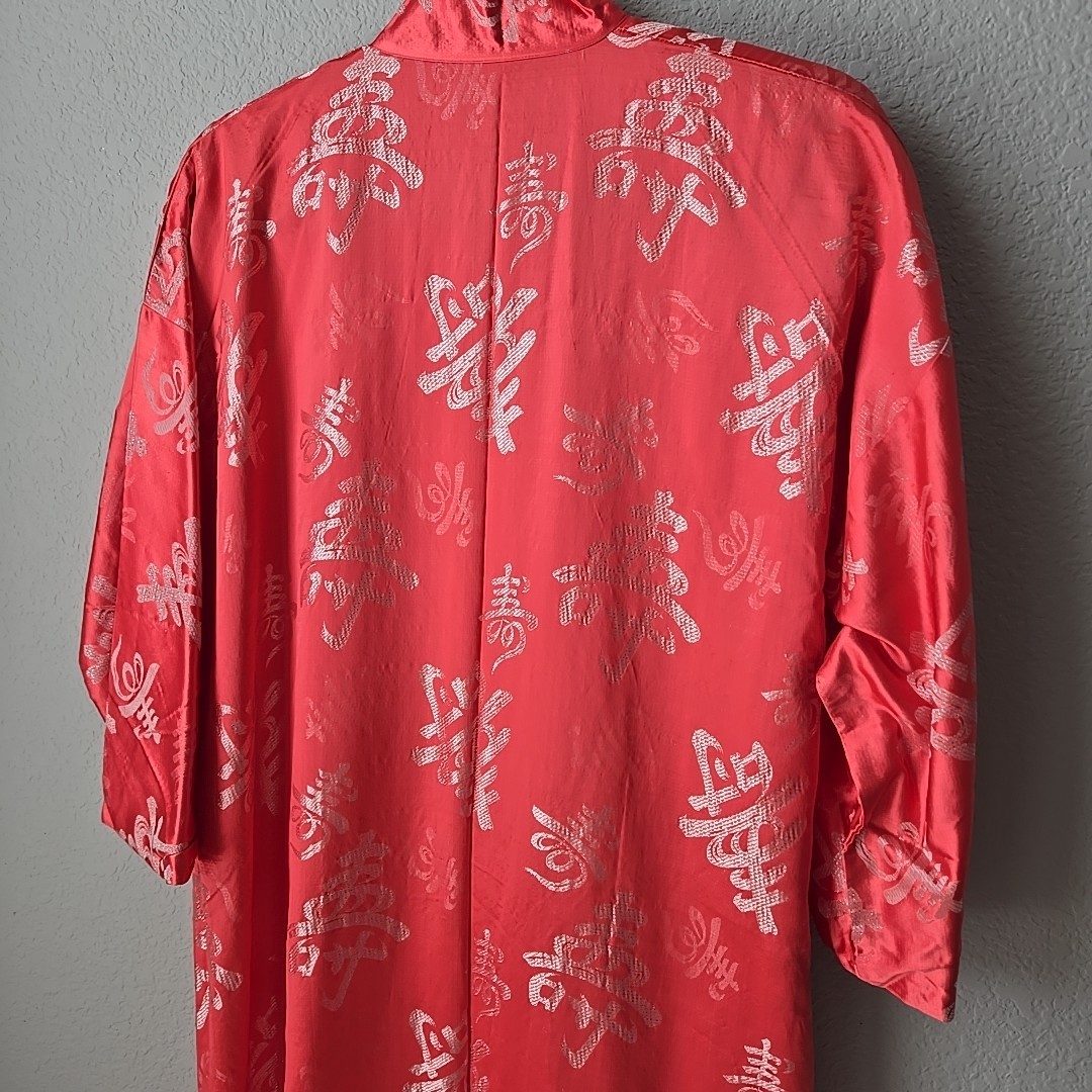 как выглядит Vtg Asian Print Kimono Japan LARGE Authentic Button Knot Lined 42" Slit Sides фото