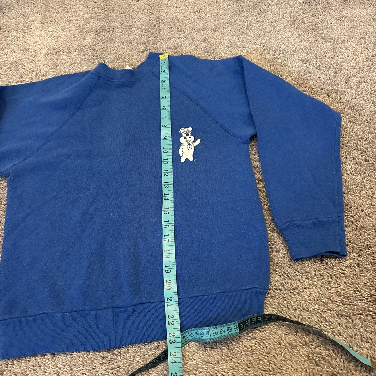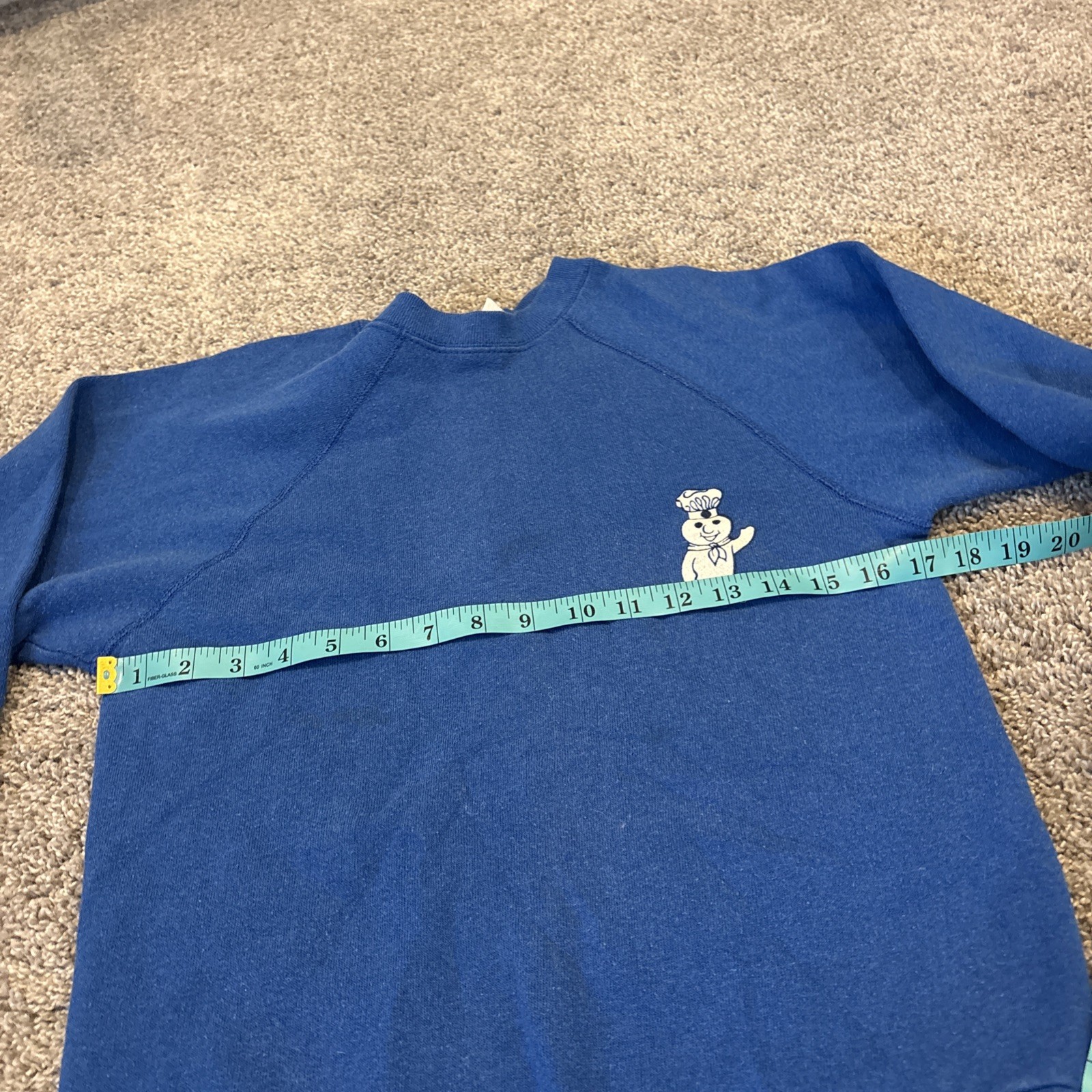 как выглядит Vintage 80s Pillsbury Doughboy Blue Crewneck Sweatshirt America