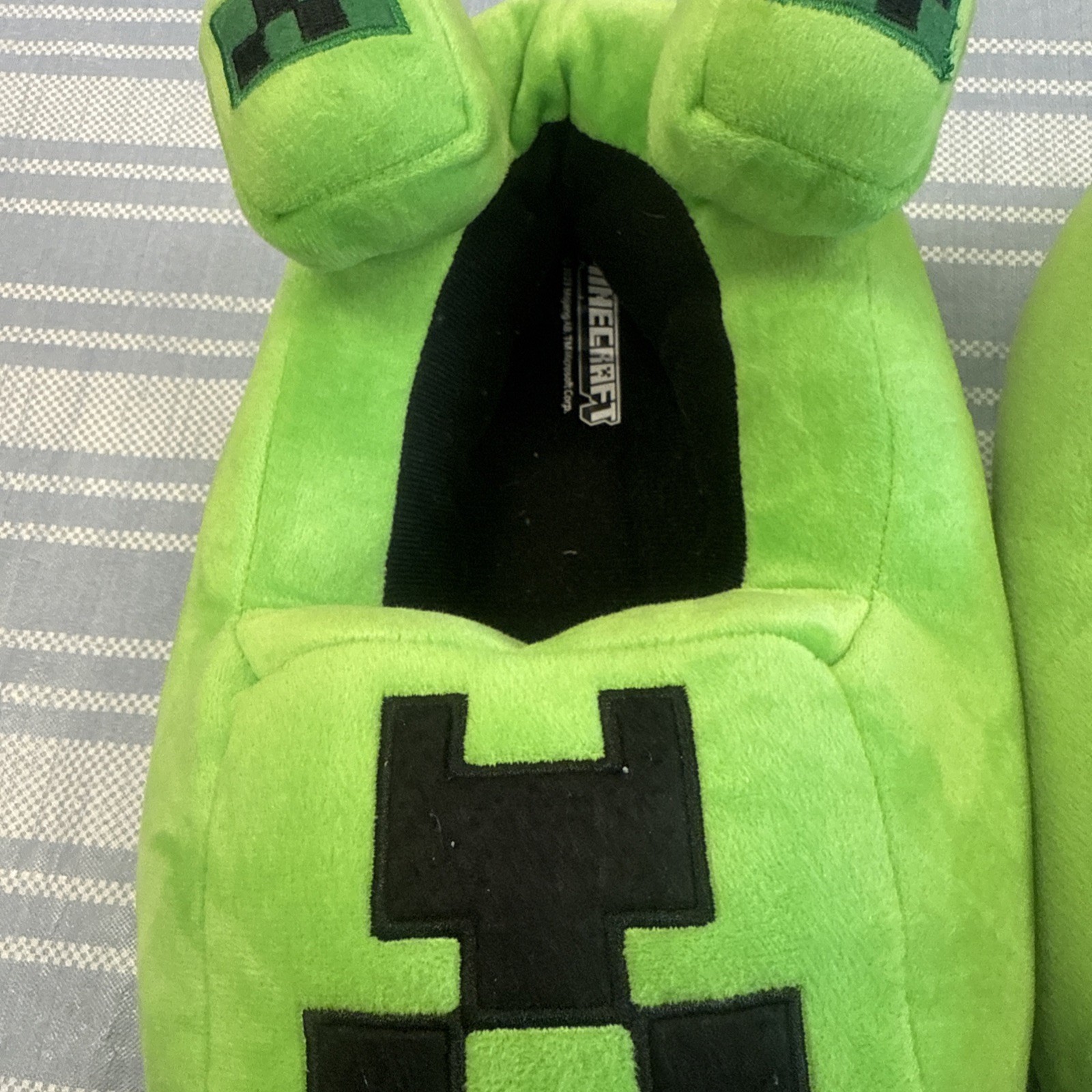 Minecraft Youth Unisex Slippers - Plush Creeper Green size 4-5