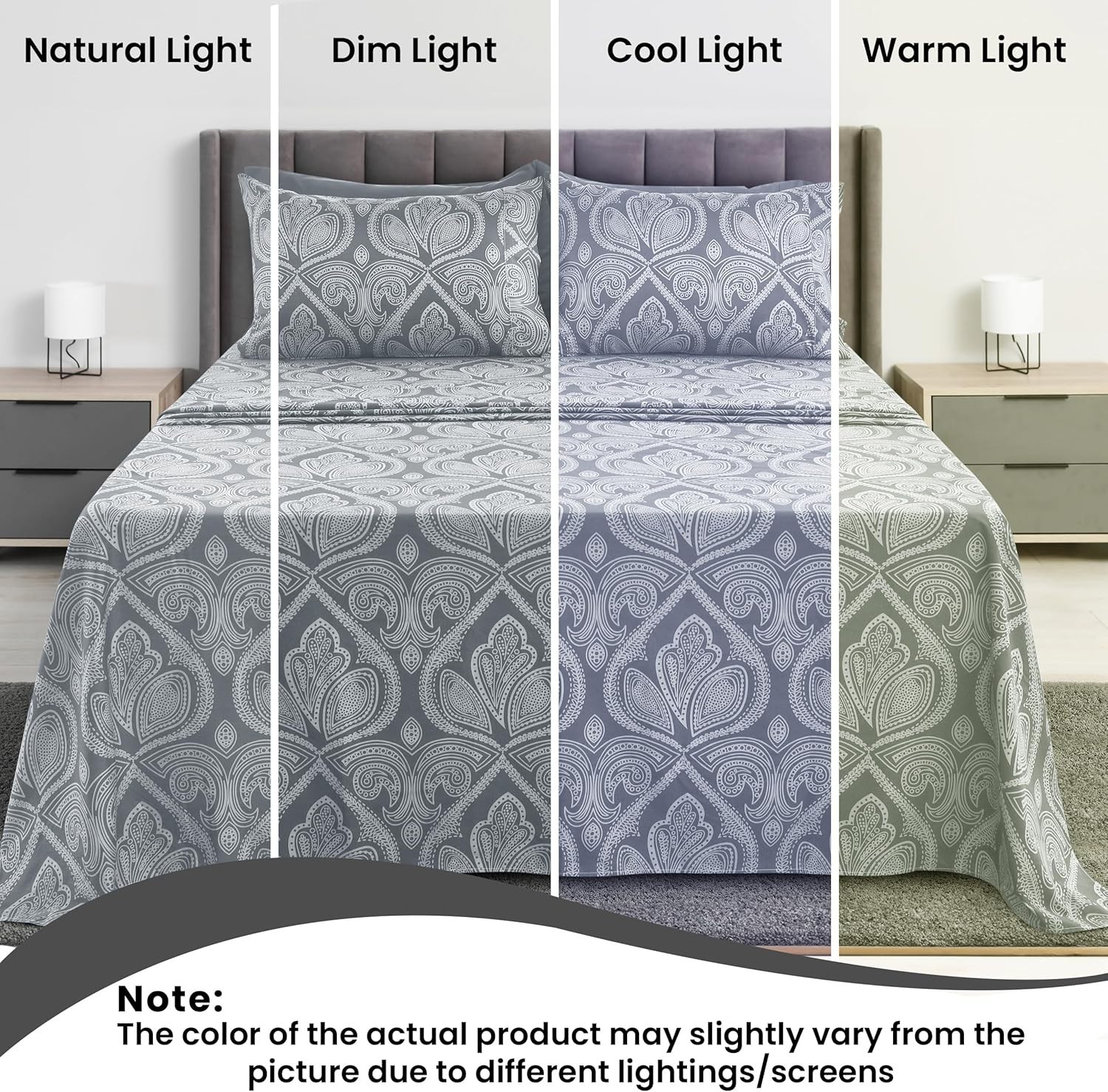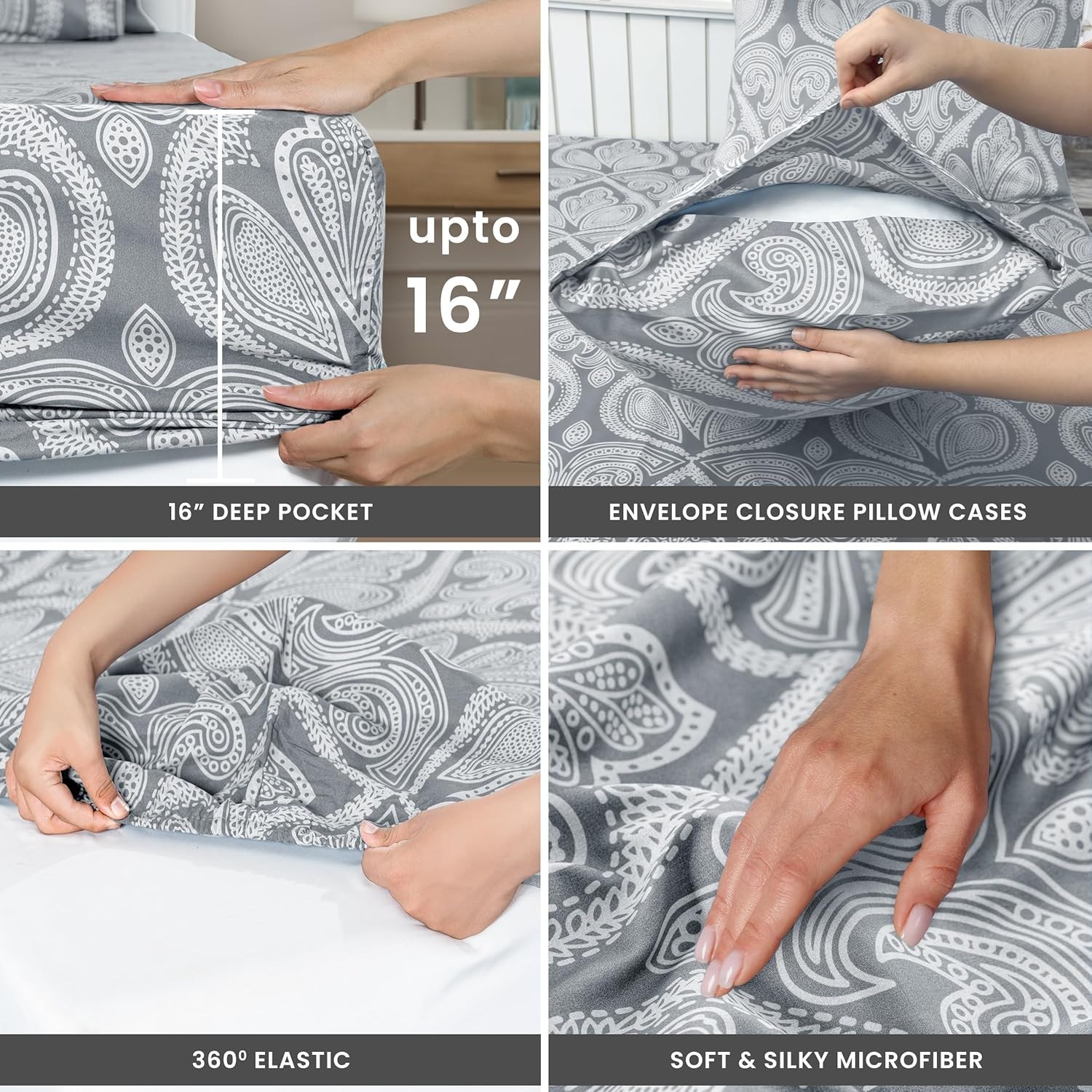 Deep Pocket 6 Piece Bed Sheets Set 1800 Series Luxury Comfort Paisley Sheet Set