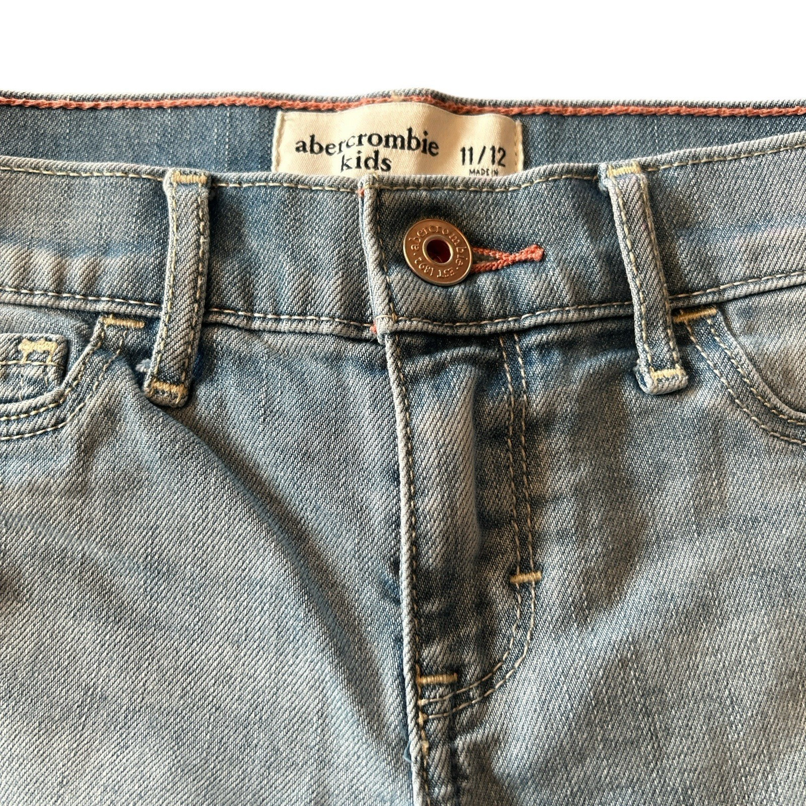 Abercrombie Fitch Kids Girls Shorts Size 11/12 Lace Accent Raw Hem Light Denim