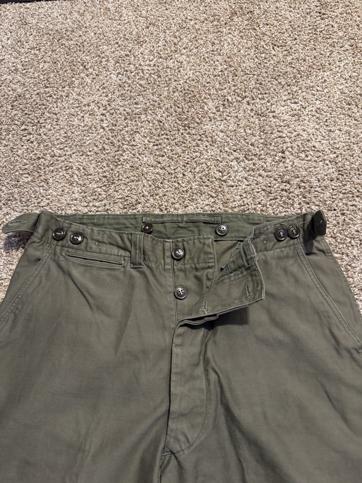 • Vintage WWII US Army Military Olive Trouser Field Cotton Chino Pants Size 32x34