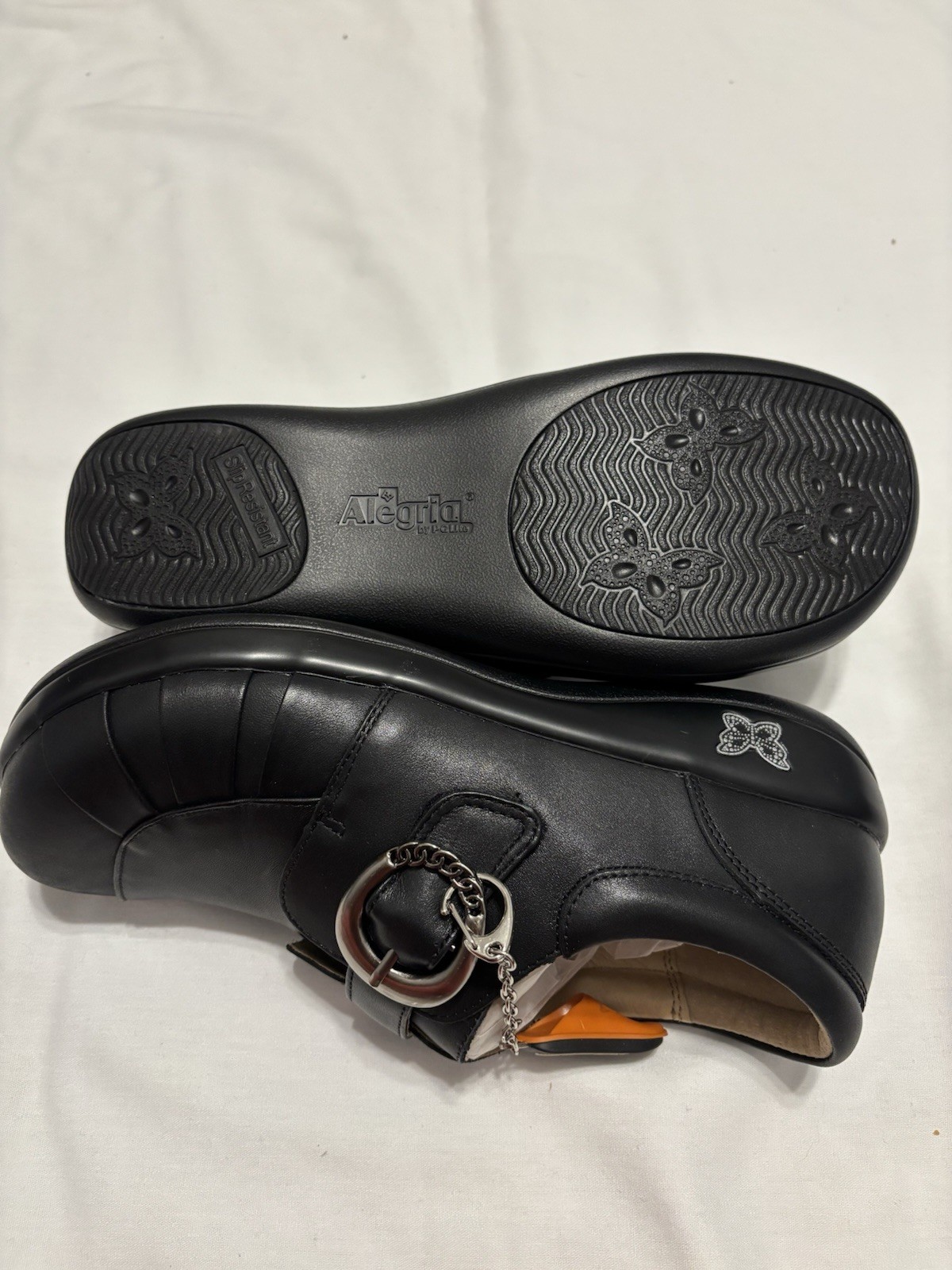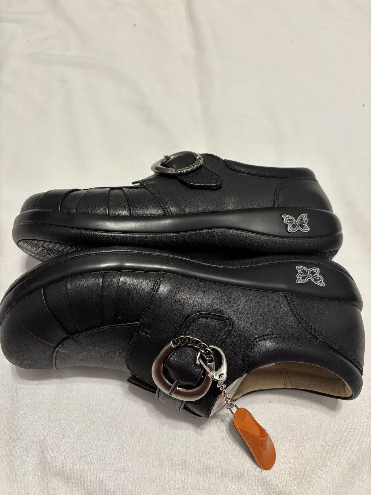 как выглядит Alegria Khloe KHL-601 Womens Black Leather Loafer Flats Shoes фото