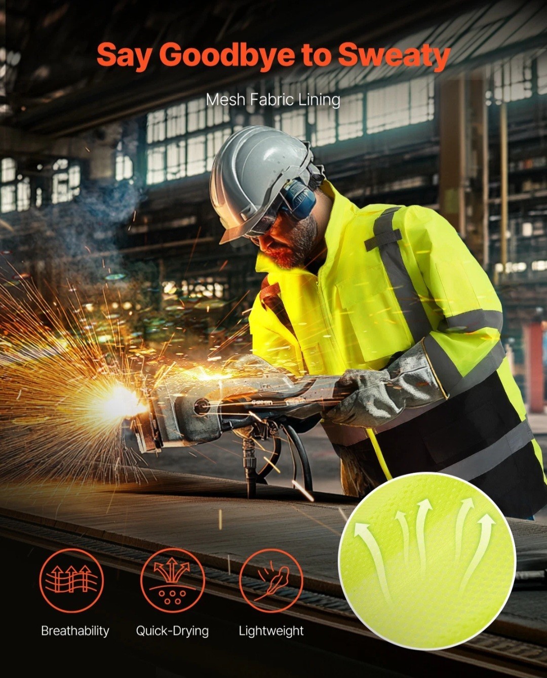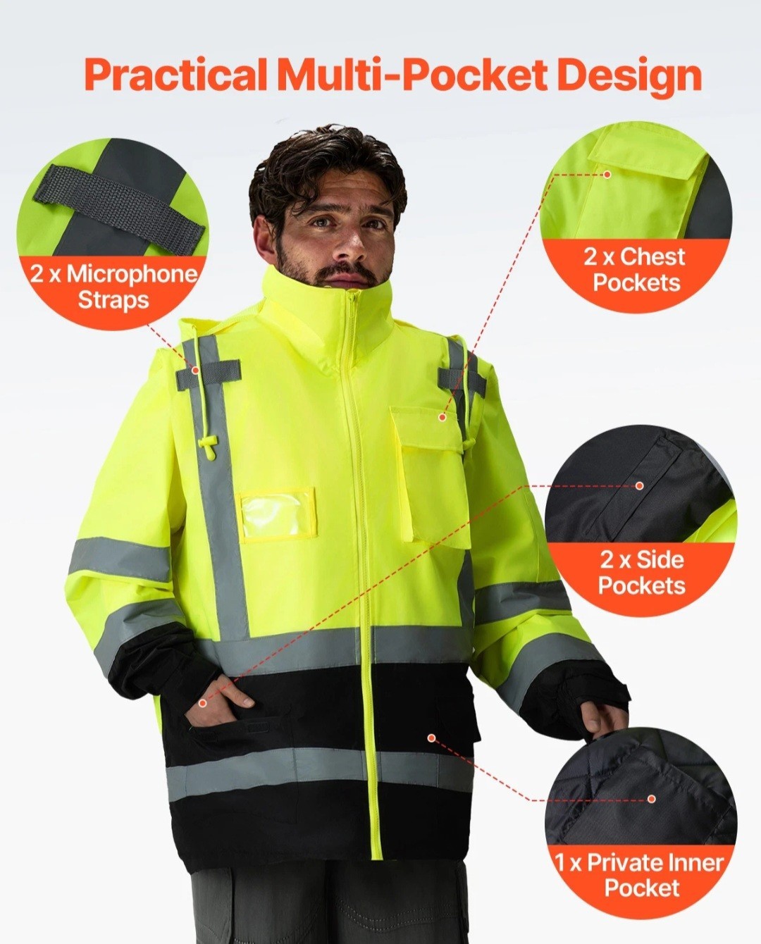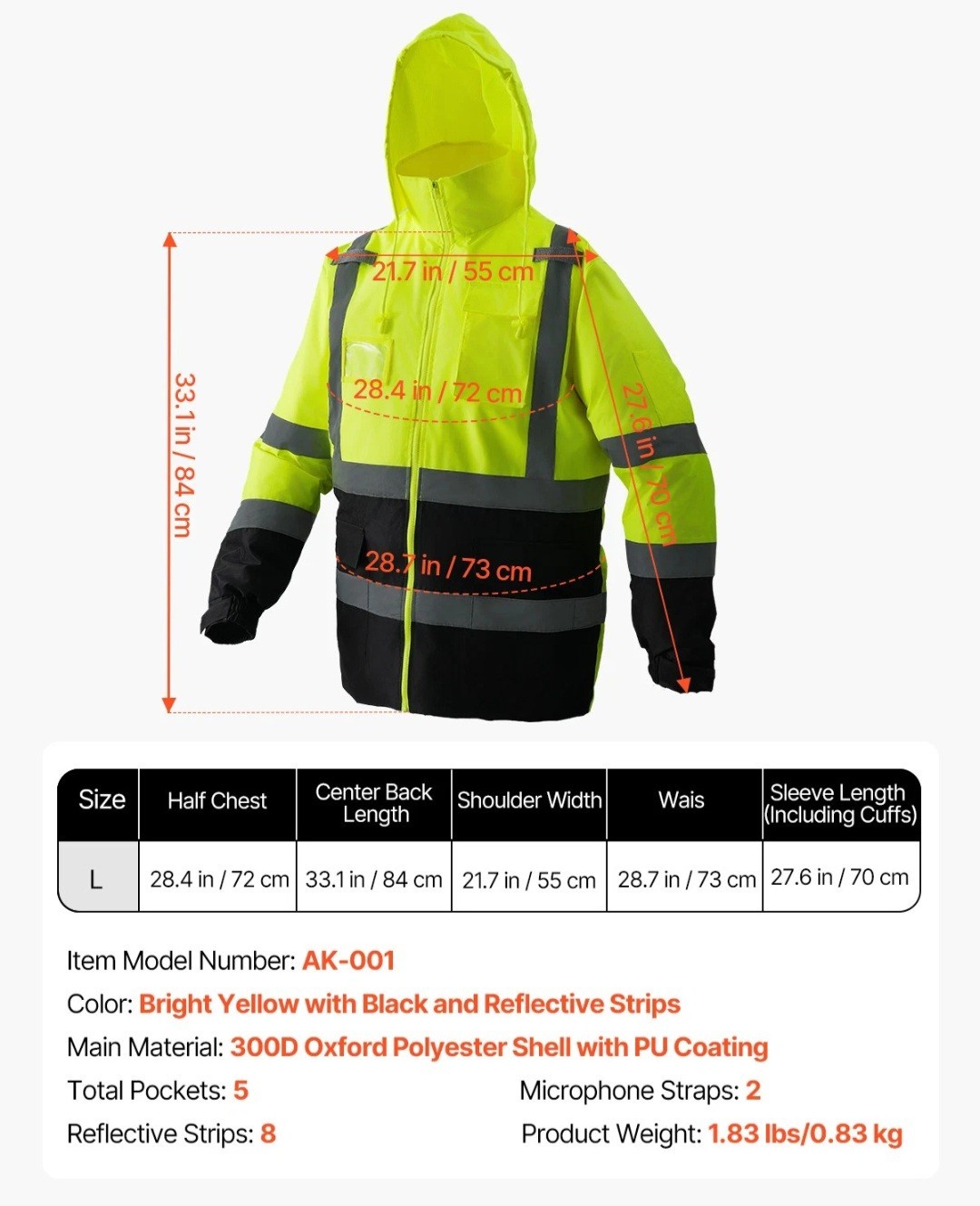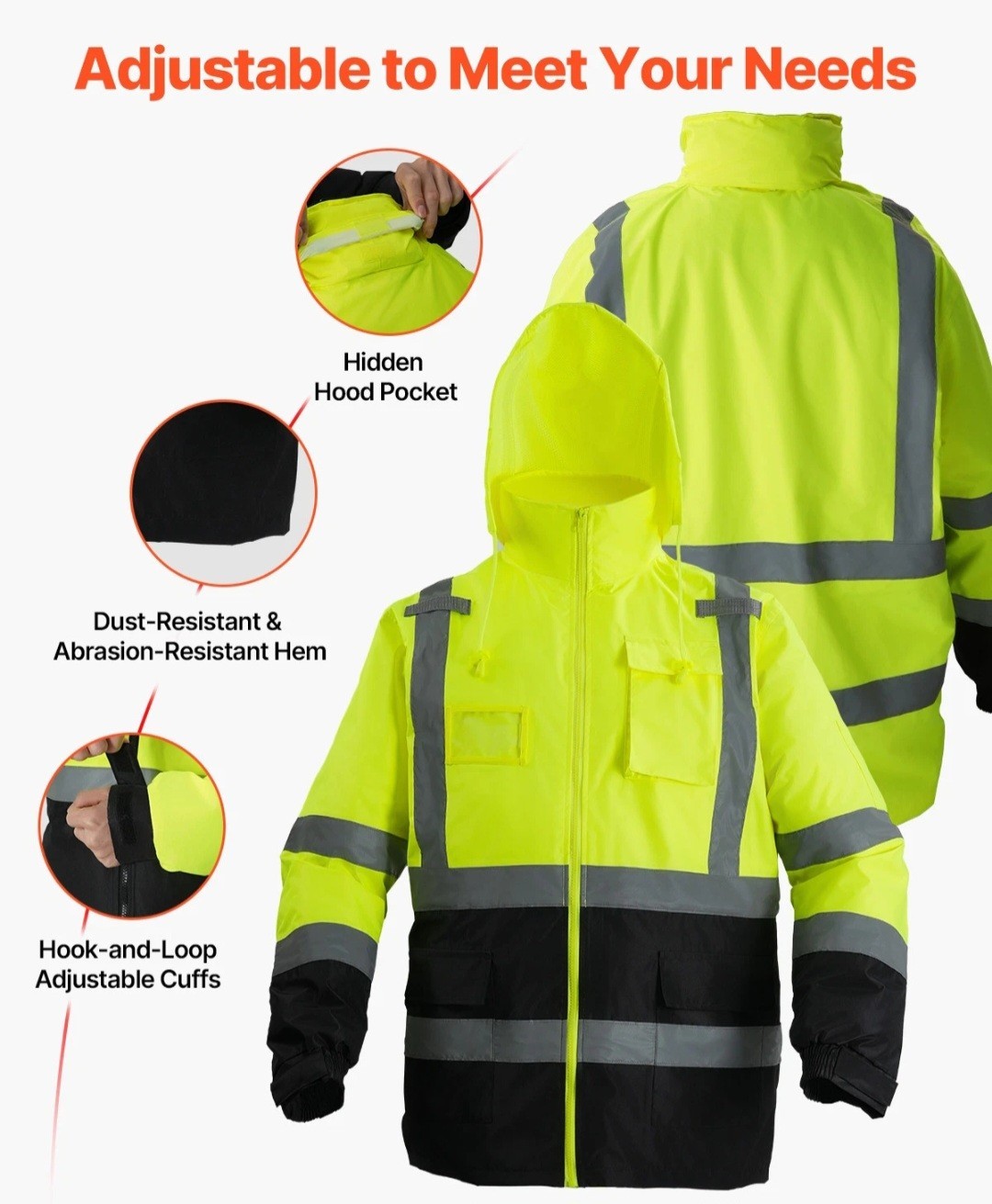 VEVOR High Visibility Reflective Safety Jacket Waterproof Hoodie Yellow Black L