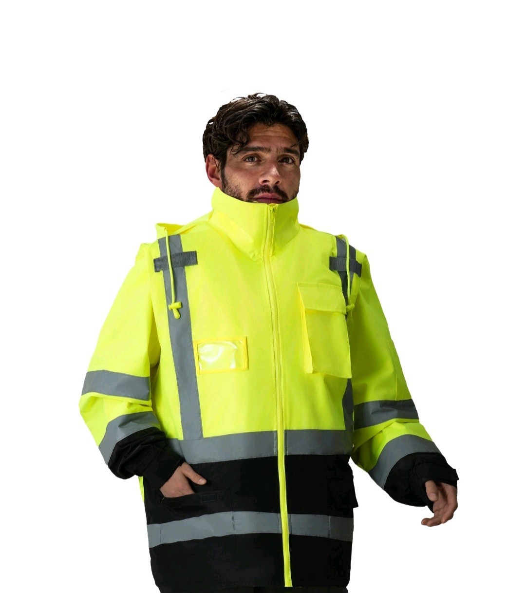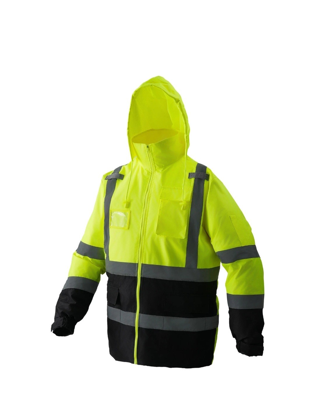 как выглядит VEVOR High Visibility Reflective Safety Jacket Waterproof Hoodie Yellow Black L фото