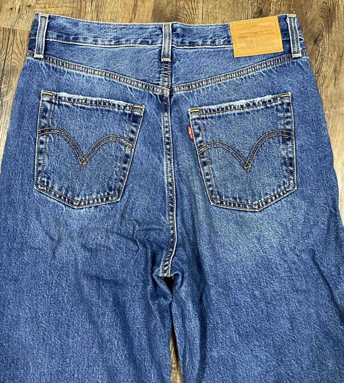 Levi s Ribcage Wide Leg Jeans Womens 28 High Rise Big E Premium Denim Blue Levis