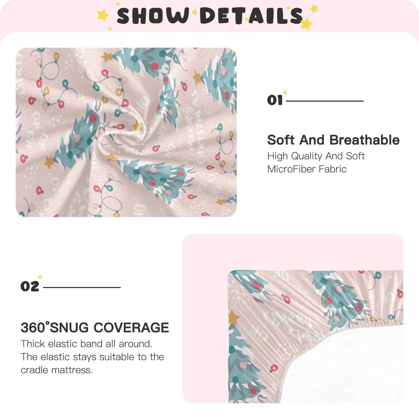 как выглядит Stretchy Crib Sheet for Baby Boy Girl,Merry Christmas Portable Mini Fitted Pa... фото
