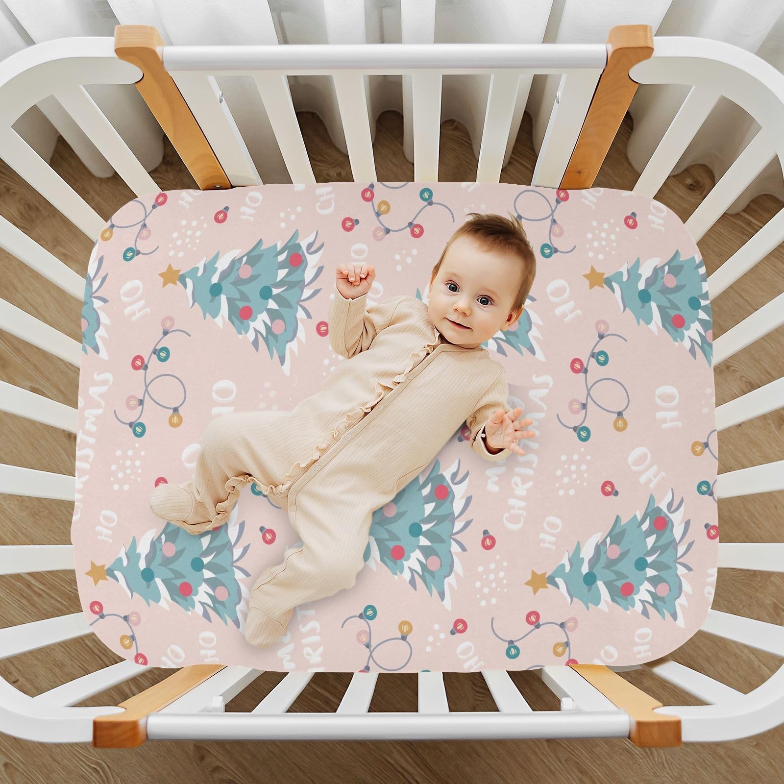 Stretchy Crib Sheet for Baby Boy Girl,Merry Christmas Portable Mini Fitted Pa...
