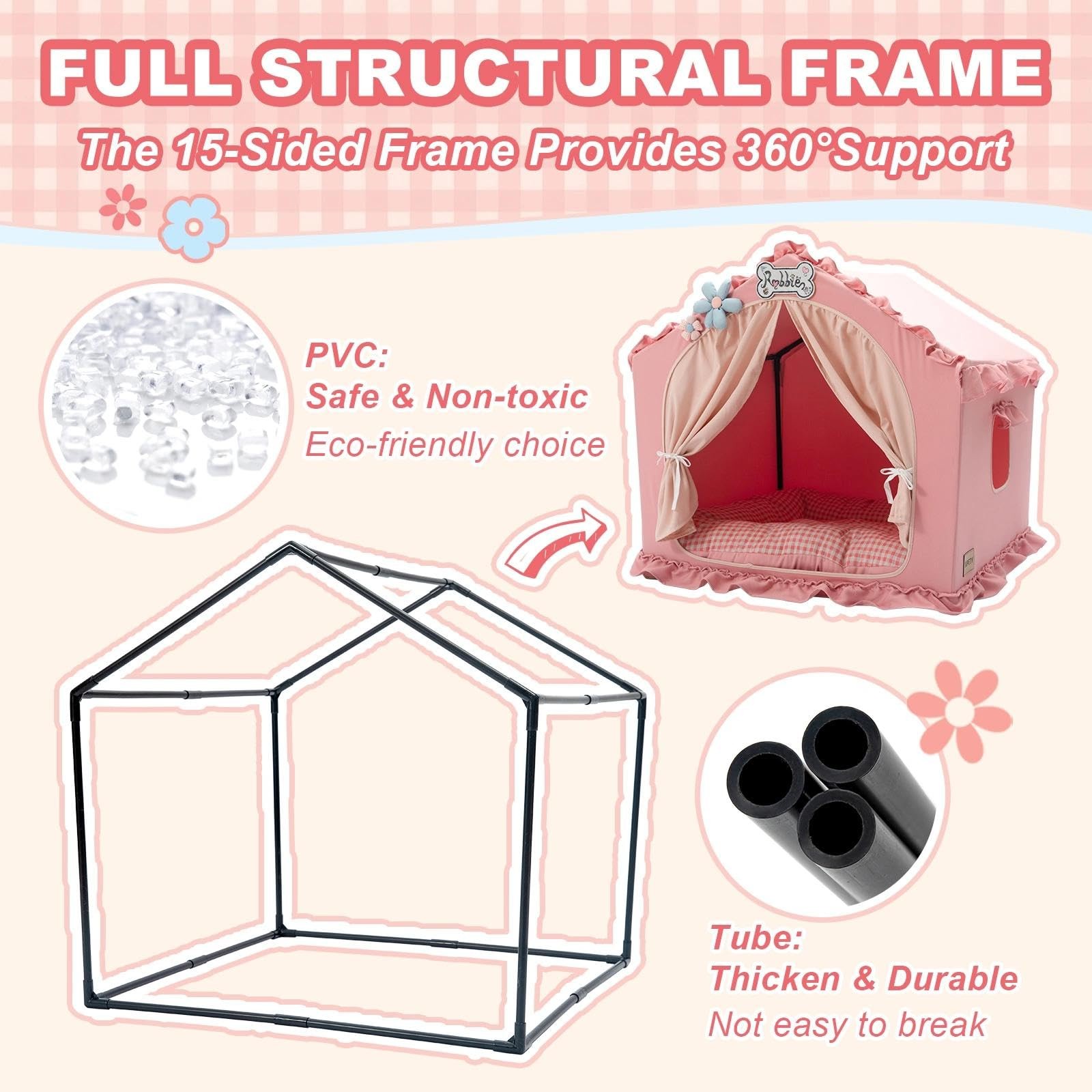 Jiupety Indoor Dog House Tent Bed Cave - Breathable, Washable, Foldable - Pink 2