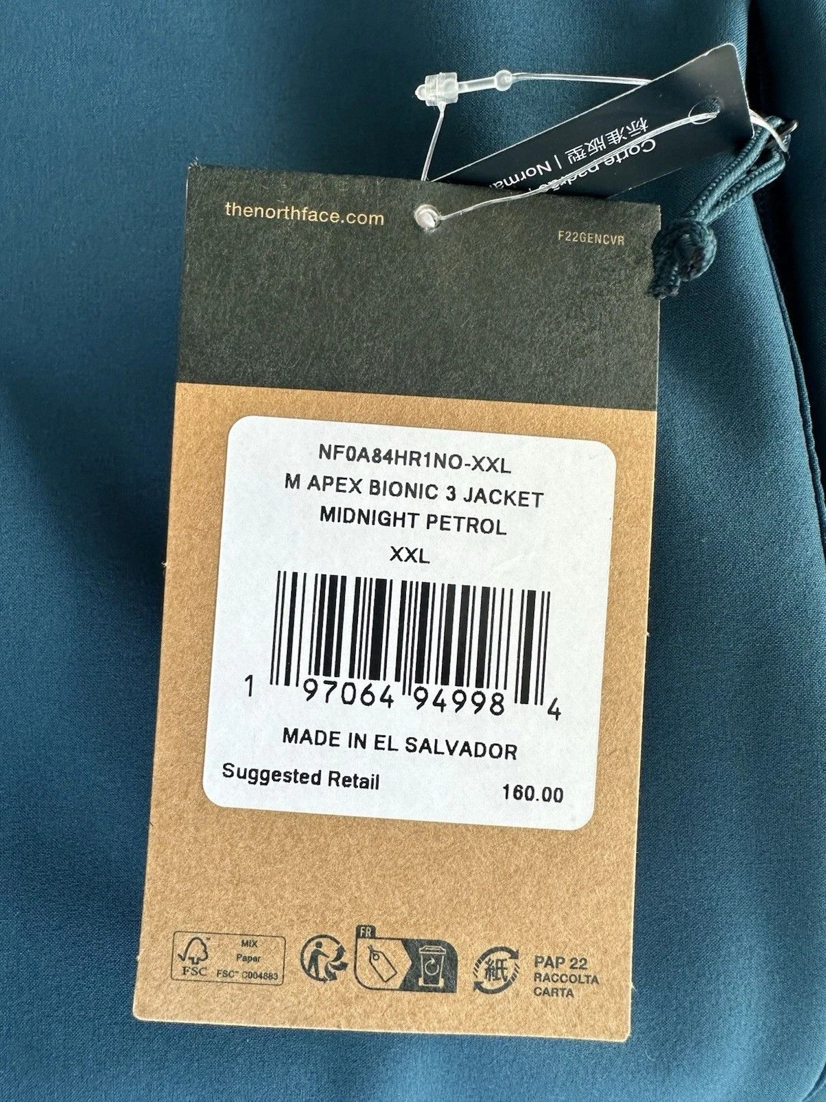 как выглядит 160 THE NORTH FACE MEN S APEX 3 BIONIC JACKET SIZE XXL MIDNIGHT PETROL WINDWALL фото