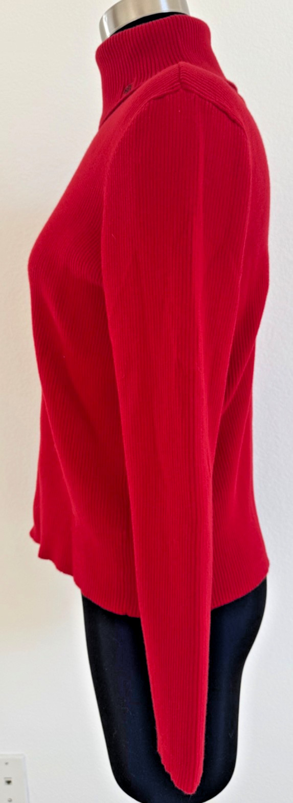 Lauren Ralph Lauren Turtleneck Sweater Red Ribbed LRL Logo Large Vintage 90s Y2K