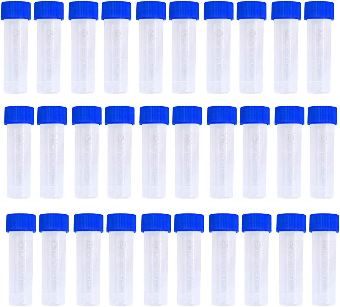50PCS 5Ml Plastic Graduated Vial Tube with Screw Caps,Small Test Sample Bottles