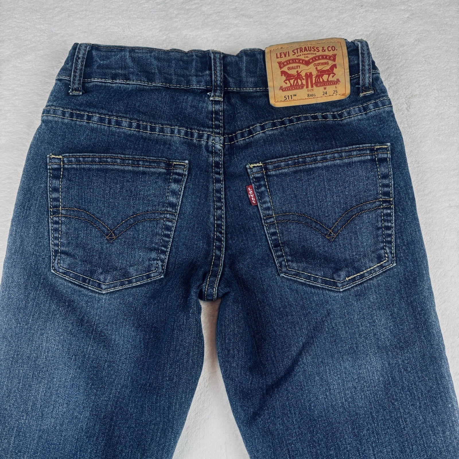 Levis 511 Slim Jeans Boys 8 Regular Med Wash Denim Adjustable Waist Straight Leg