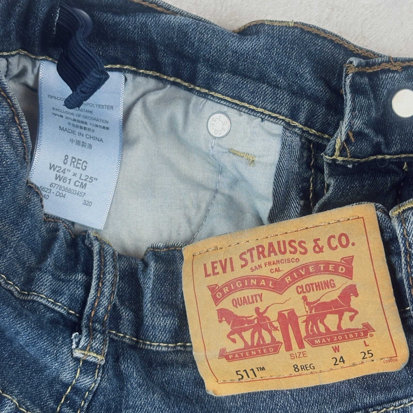 как выглядит Levis 511 Slim Jeans Boys 8 Regular Med Wash Denim Adjustable Waist Straight Leg фото