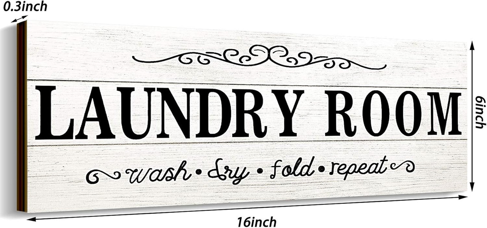 Rustic Wooden Laundry Room Sign - Wash, Dry, Fold, Repeat Decor, 16x6 Inches