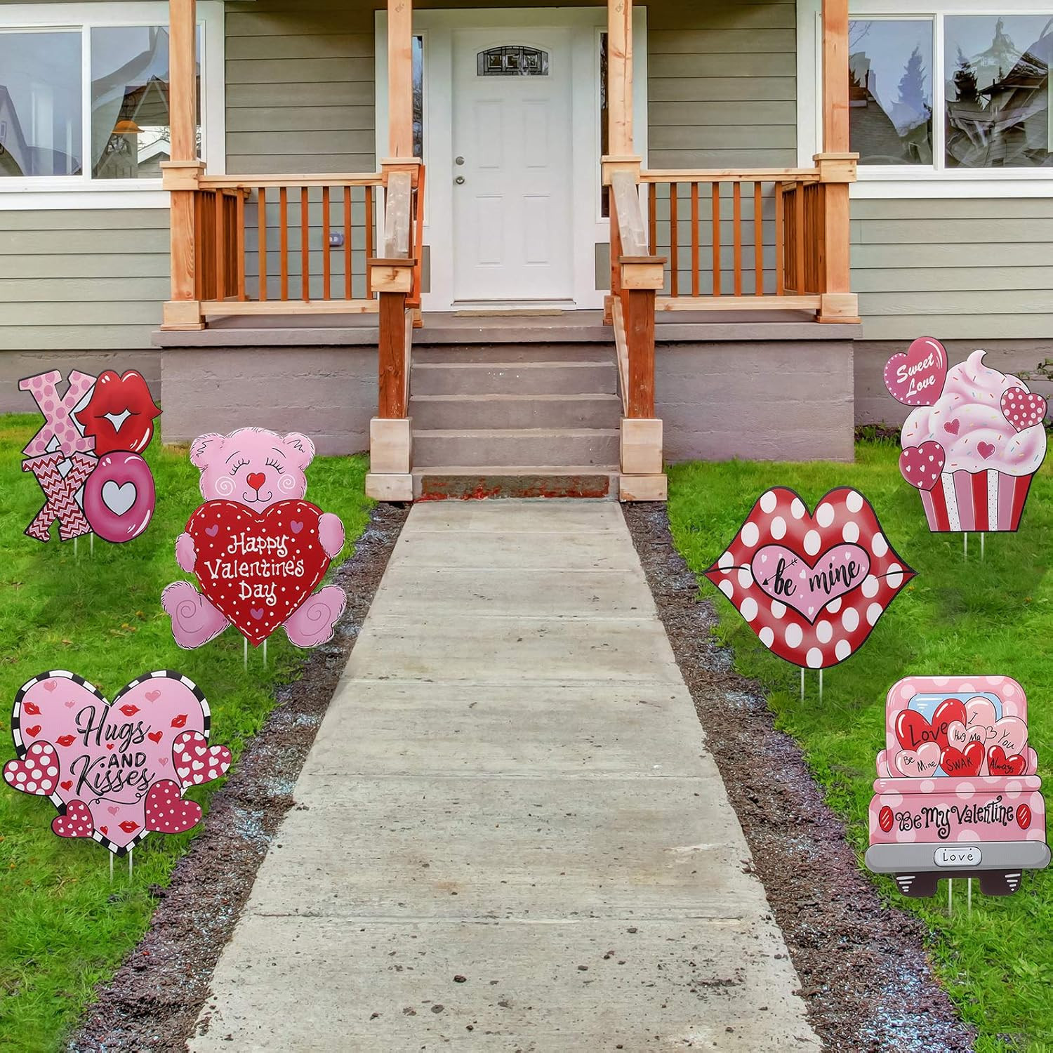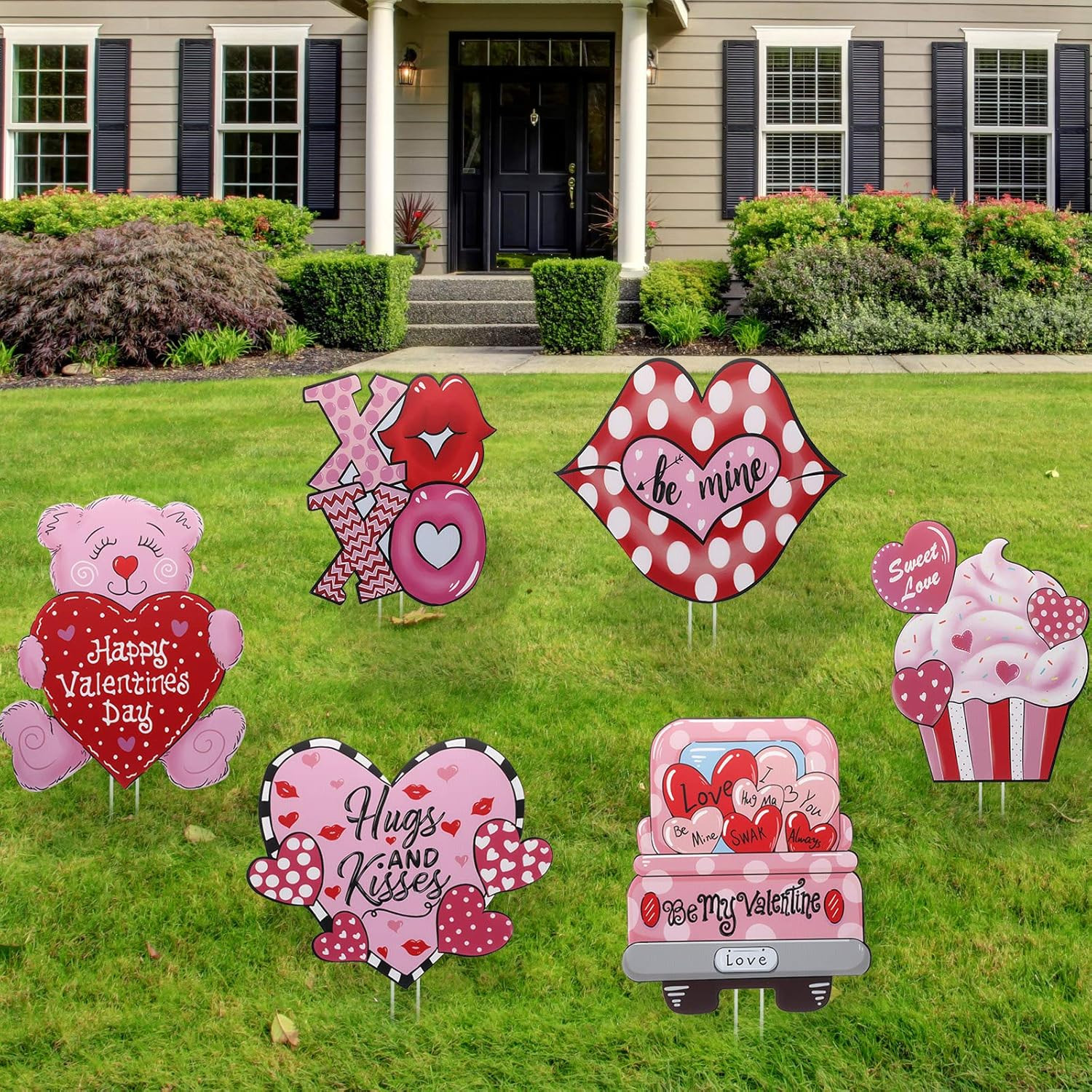 Valentine's Day Outdoor Yard Stakes Set with Hearts and Lawn Stakes, 6 Pieces