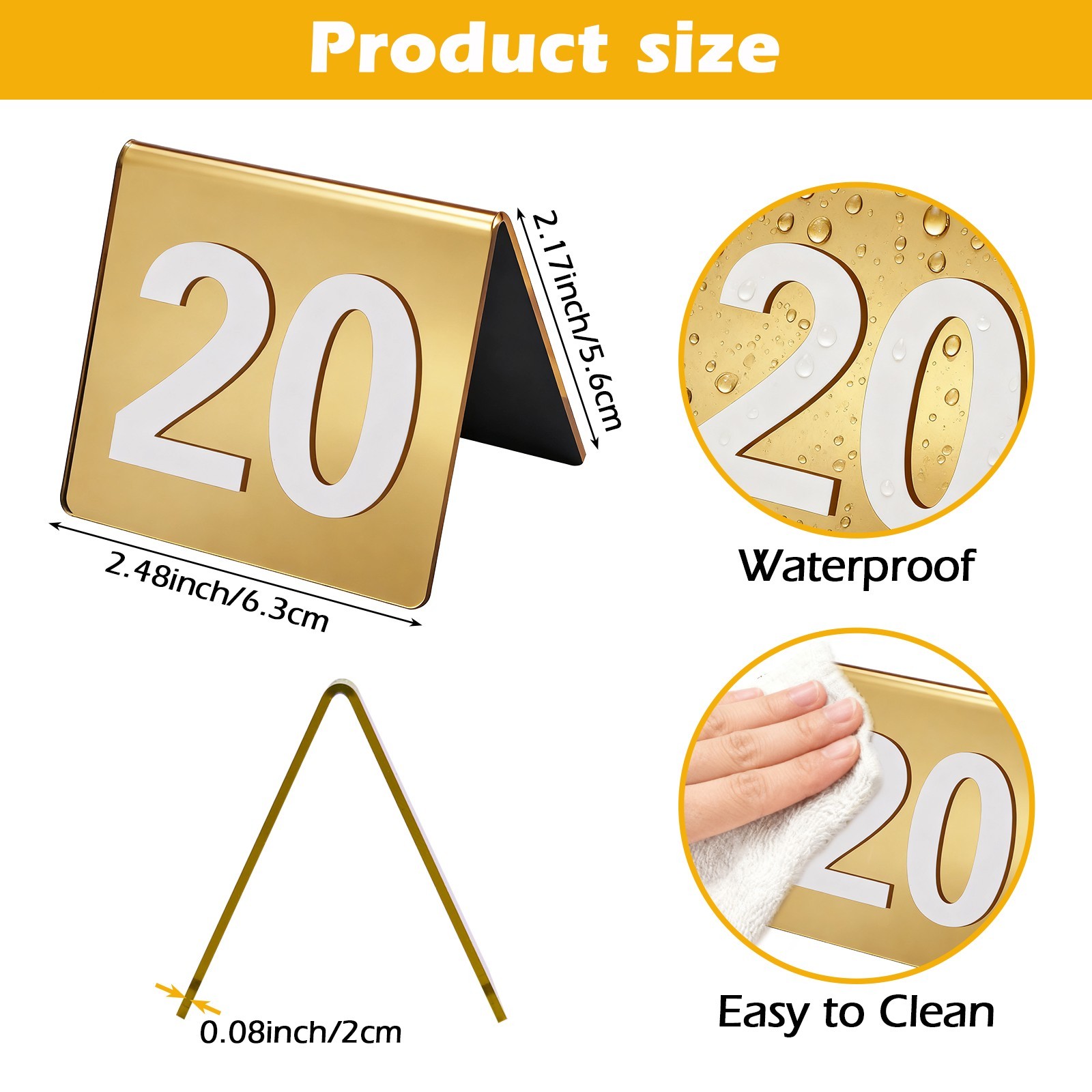 Patioer Gold Table Numbers 1-25 Acrylic Tent Style Table Number Card Signs