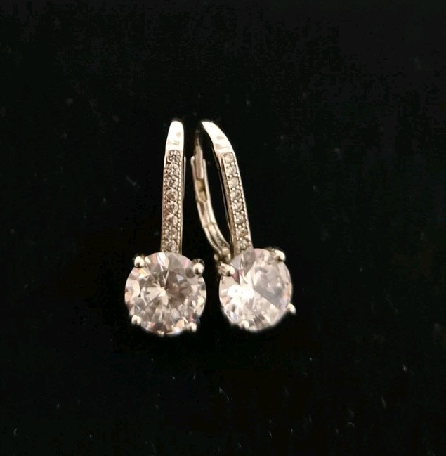 как выглядит 925 Sterling Silver Round CZ Dangle Earrings фото