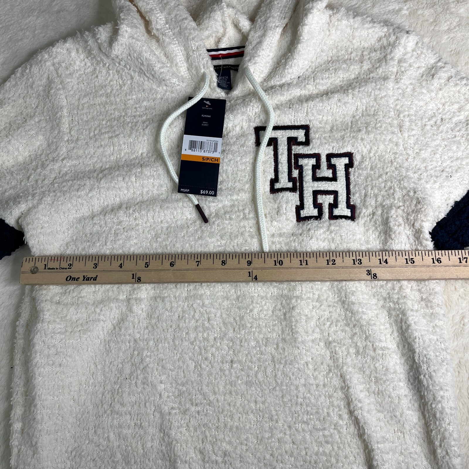 Tommy Hilfiger Sweater Womens Size S White Varsity Fleece Hoodie Sweatshirt NWT