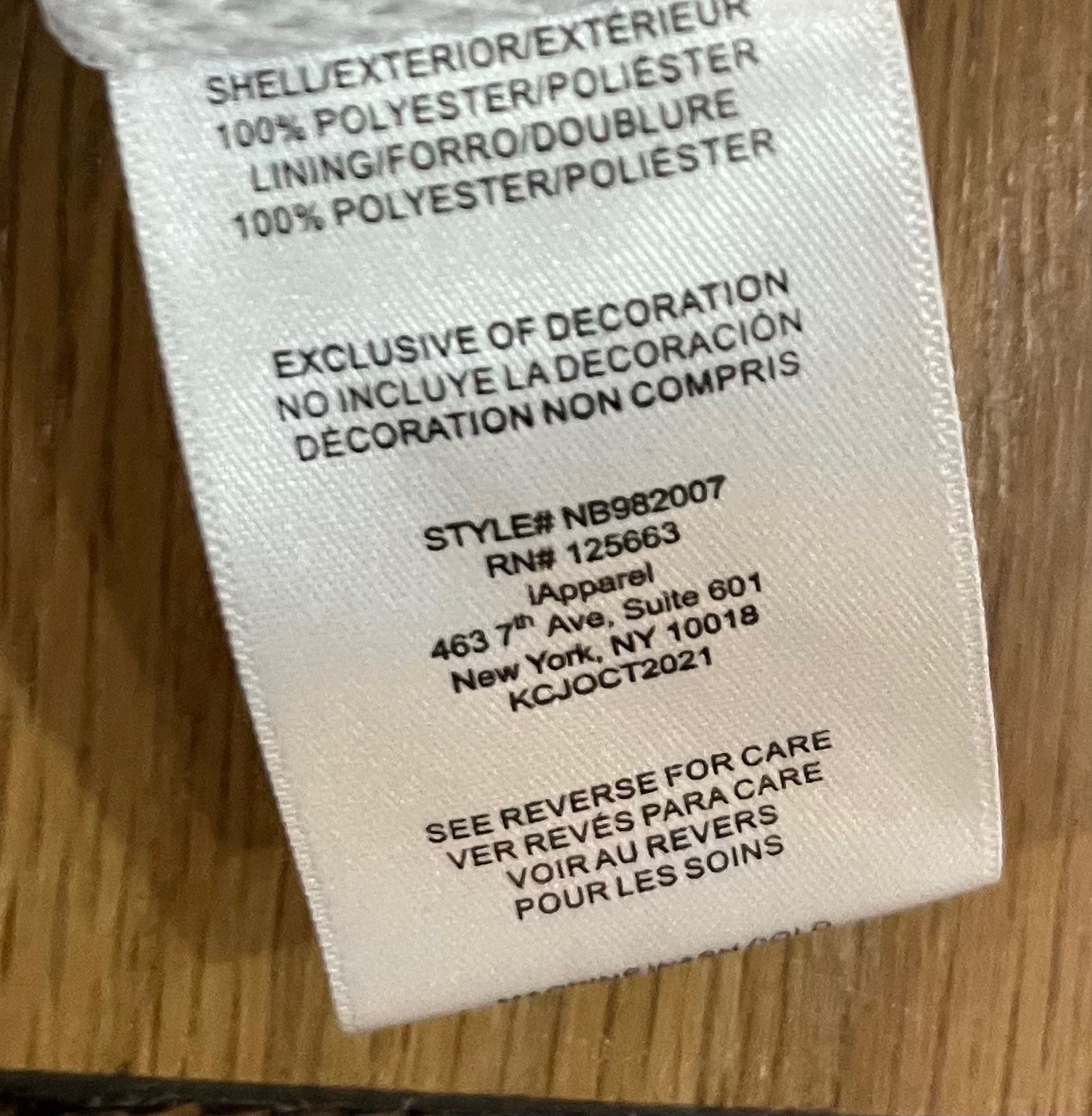 Outer Shell Material: 100% Polyester