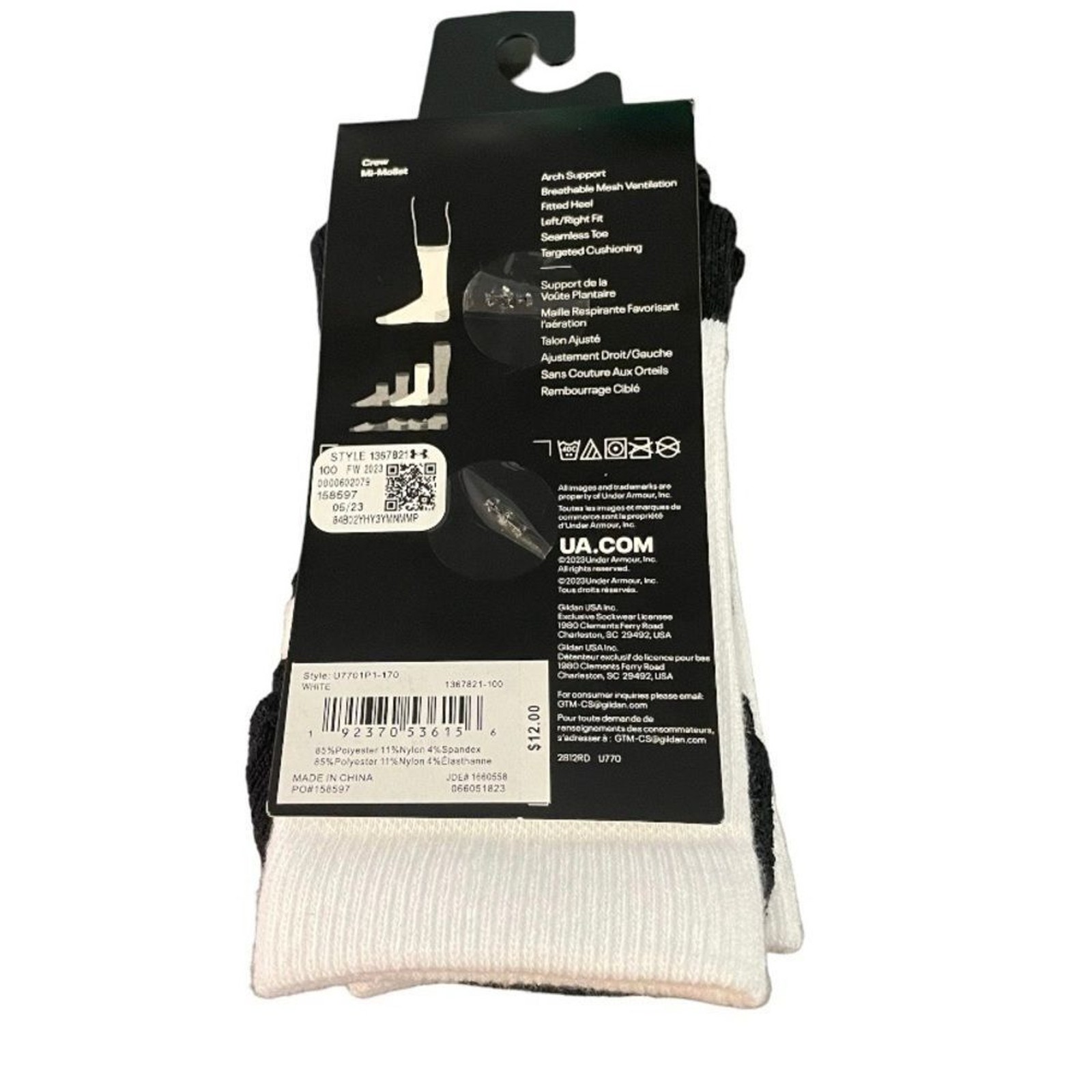 как выглядит UNDER ARMOUR kids cushioned crew socks 13.5 K- 4.5 youth, white socks , New фото