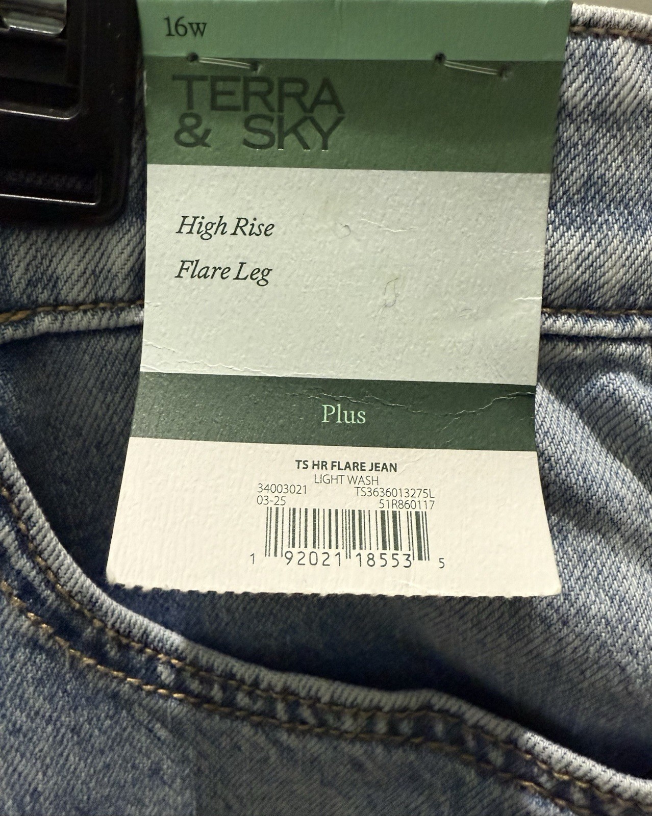 как выглядит New Terra Sky Light Wash High Rise Raw Edge Hem Flare Jean. Plus Size 16W. Cute фото