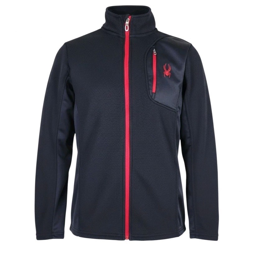 Spyder Sweater Jacket Girls XL 18/20 Black Red Trim Full Front: Zipper Fleece Lined