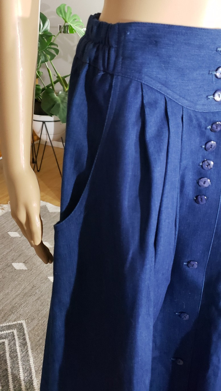 Vintage 80s Denim Skirt Cottagecore Button Prairie Western USA Sz 12 NOS