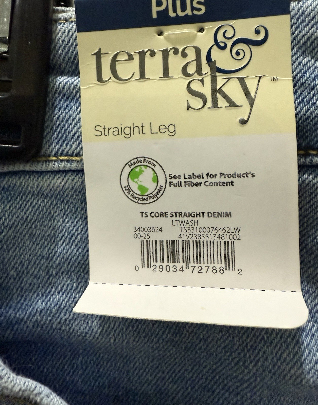 New Terra Sky Light Wash High Rise Straight Leg Denim Jean.Size 16W . Great Jean